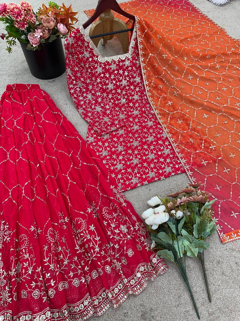 💃Dupatta Fabric: Heavy Georgette With Embroidery Sequence Work With Digital Print