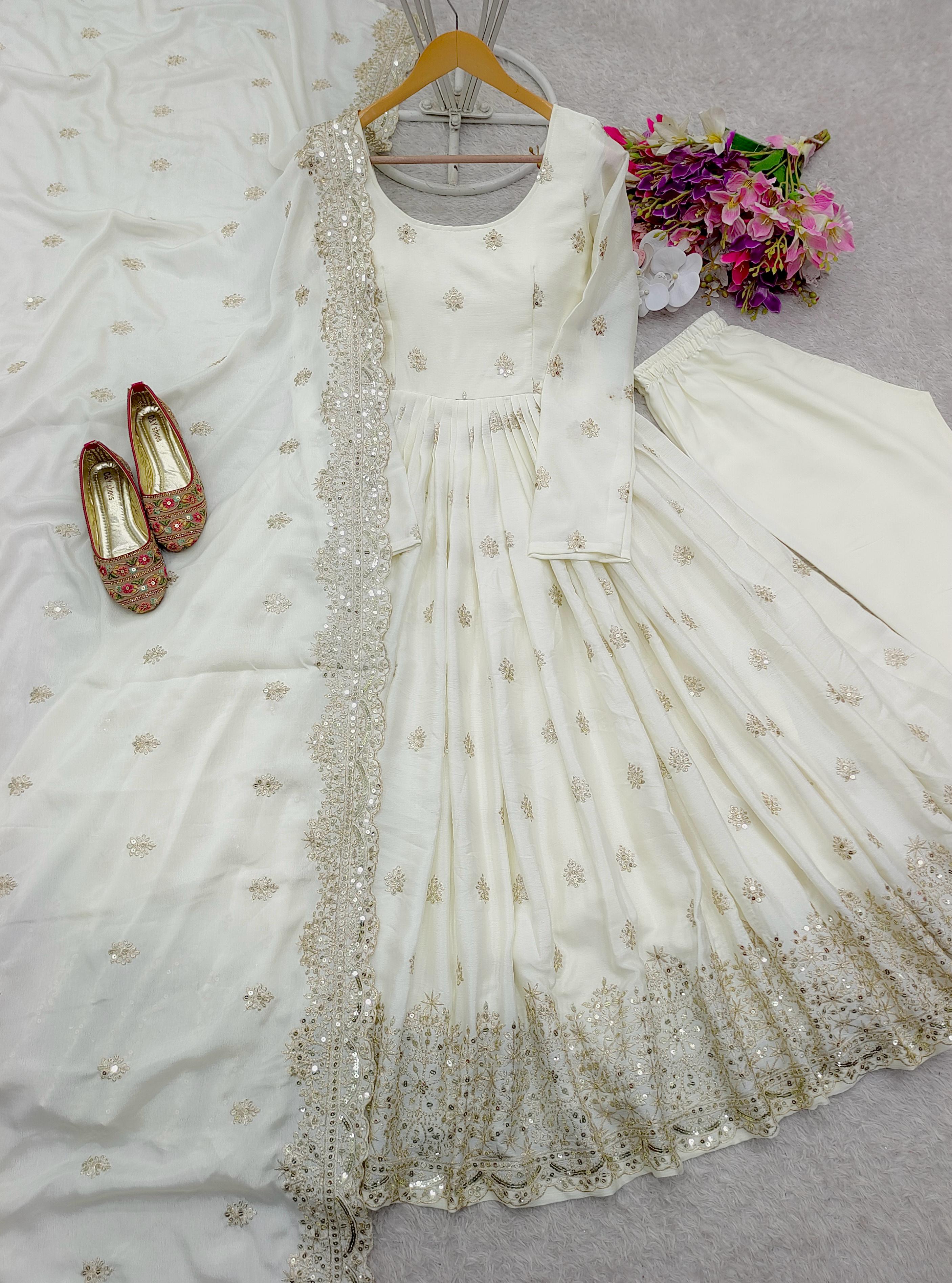 Gown Fabric : Pure Cinon Silk With Heavy Embroidery 5mm Sequence Work With Full 24-25 Inch Sleeve With (Attached Ped)