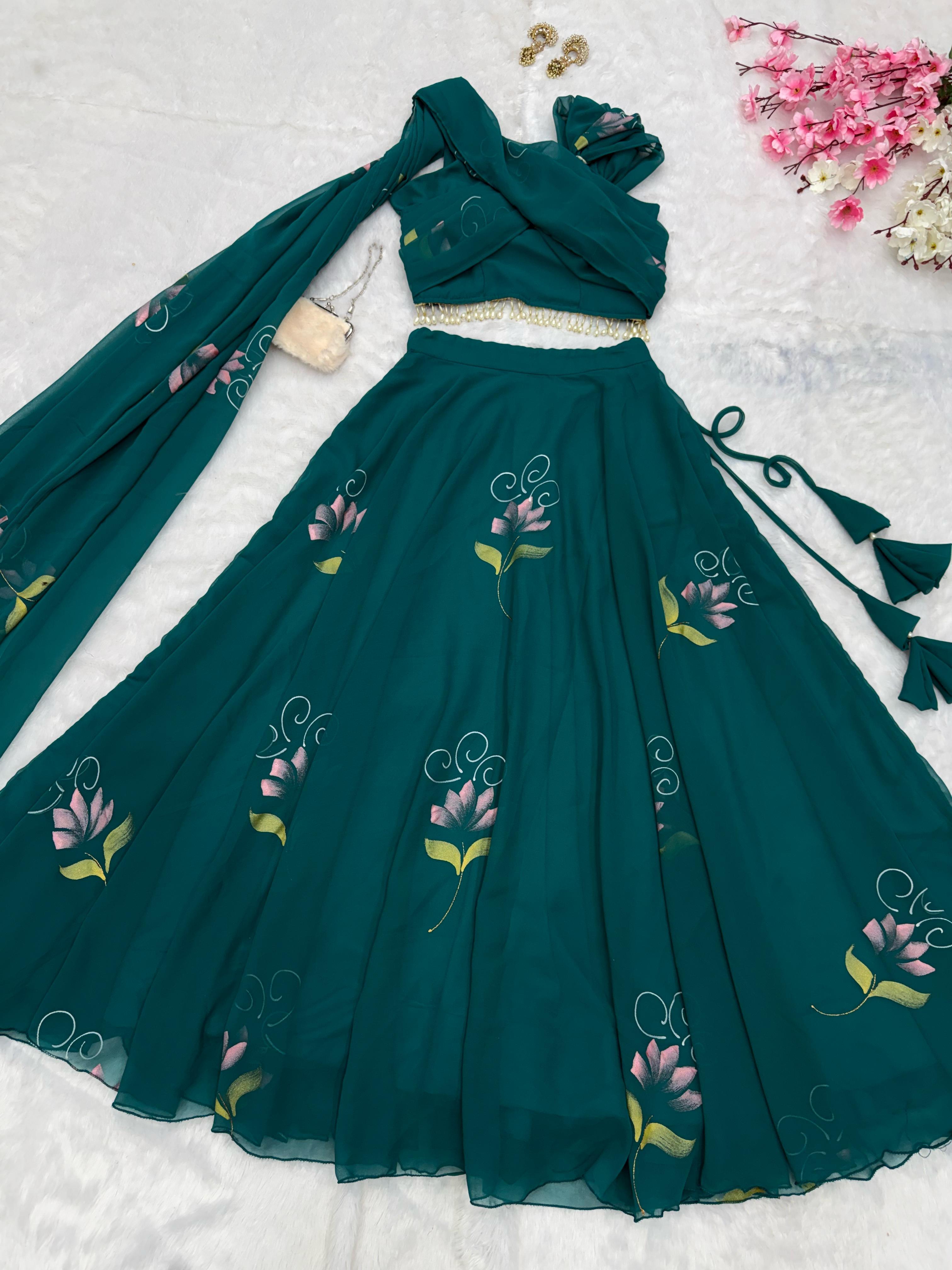 lehenga - Georgette hand painted 8mtr flair lehenga with canvas patta and adjustable waist Dori🌸