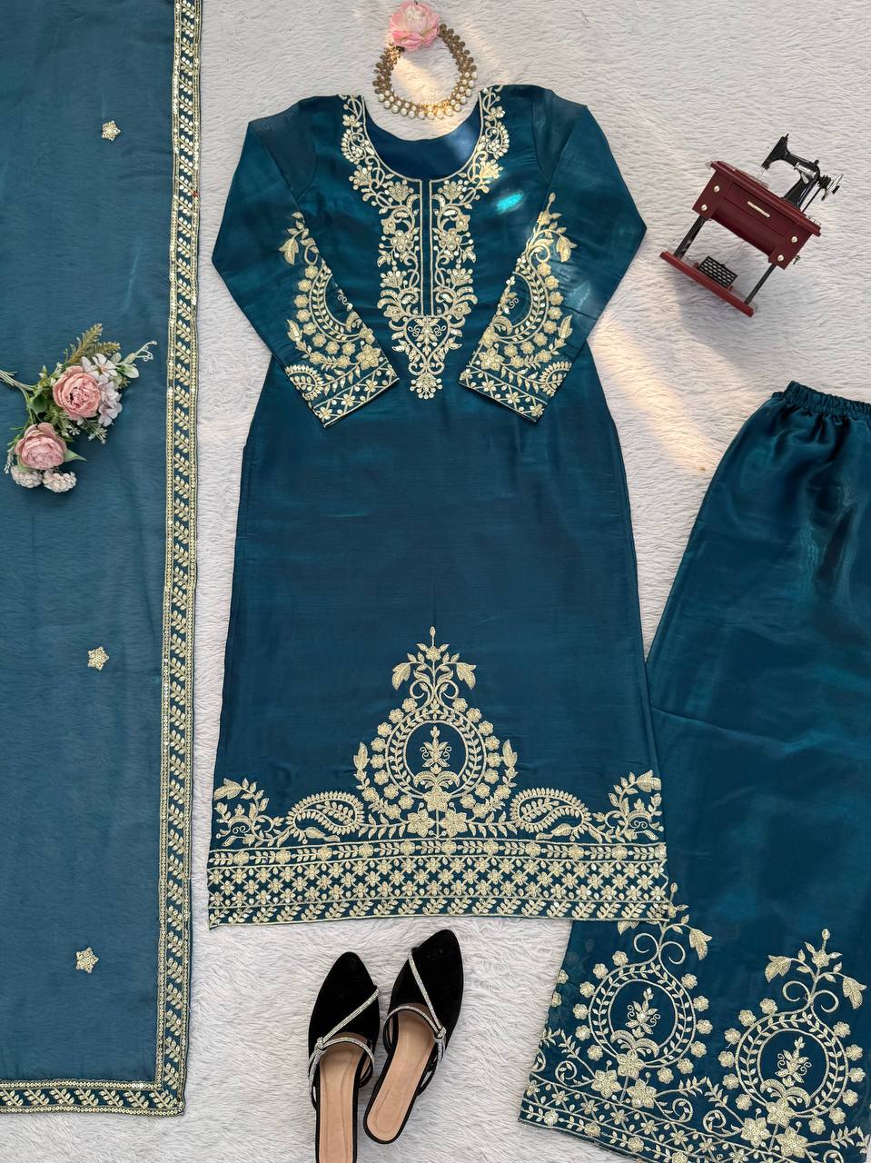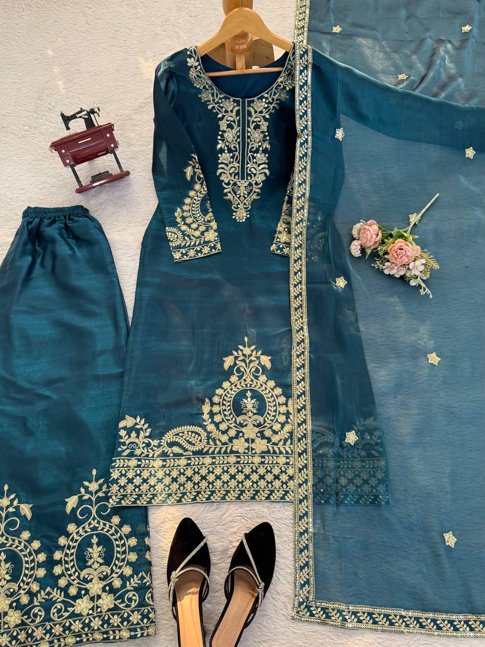 Alluring Blue Jmc Silk Thread Work Plazo Suit