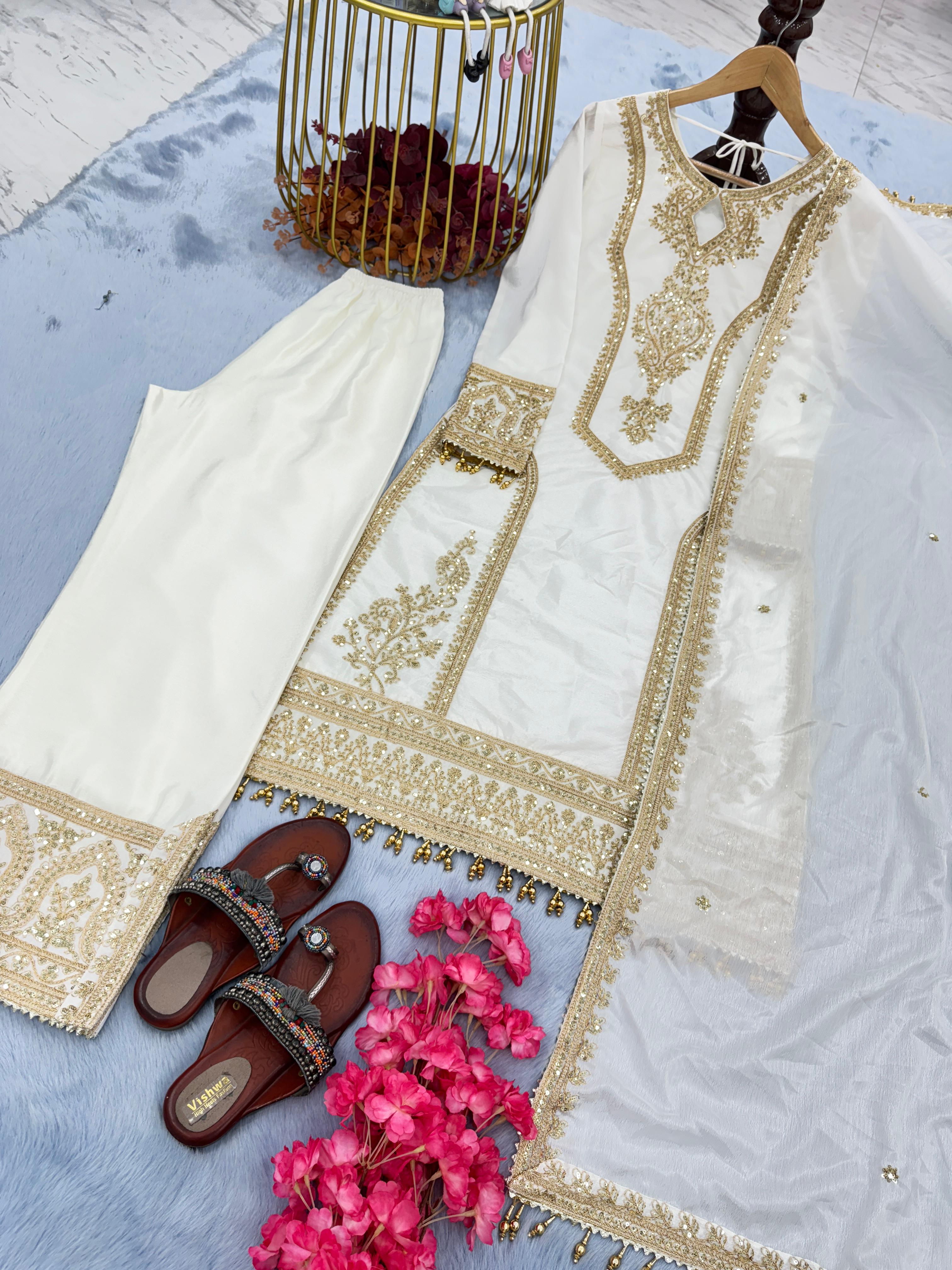 Beautiful  Embroidery Sequence Work White Color Anarkali Suit
