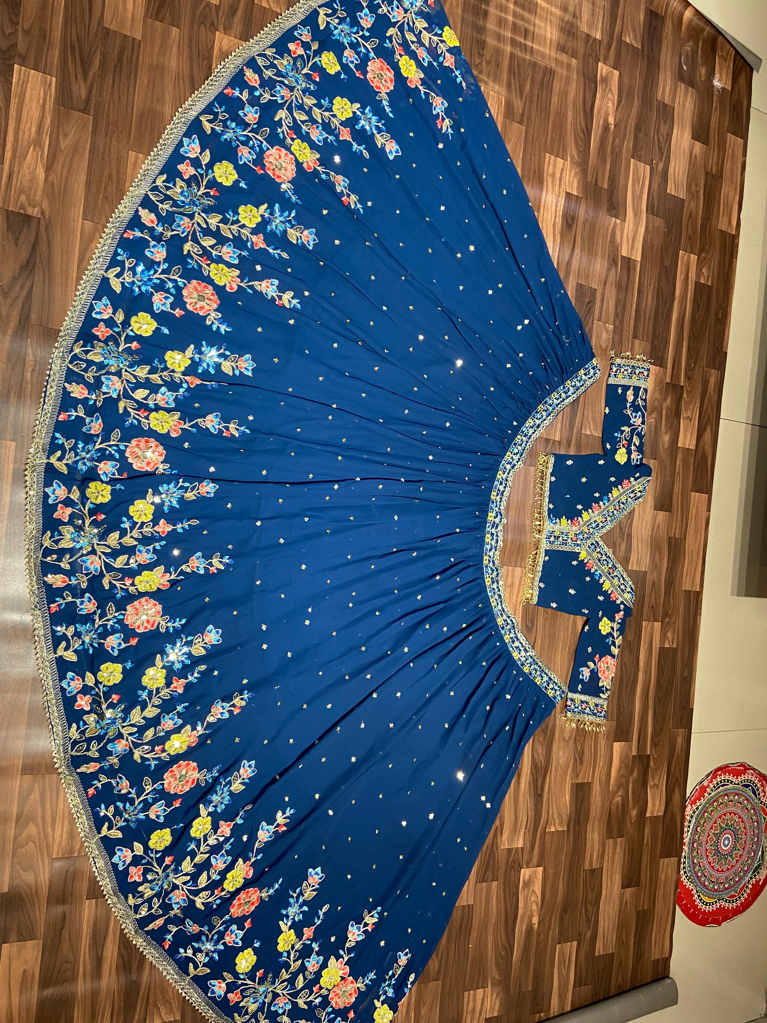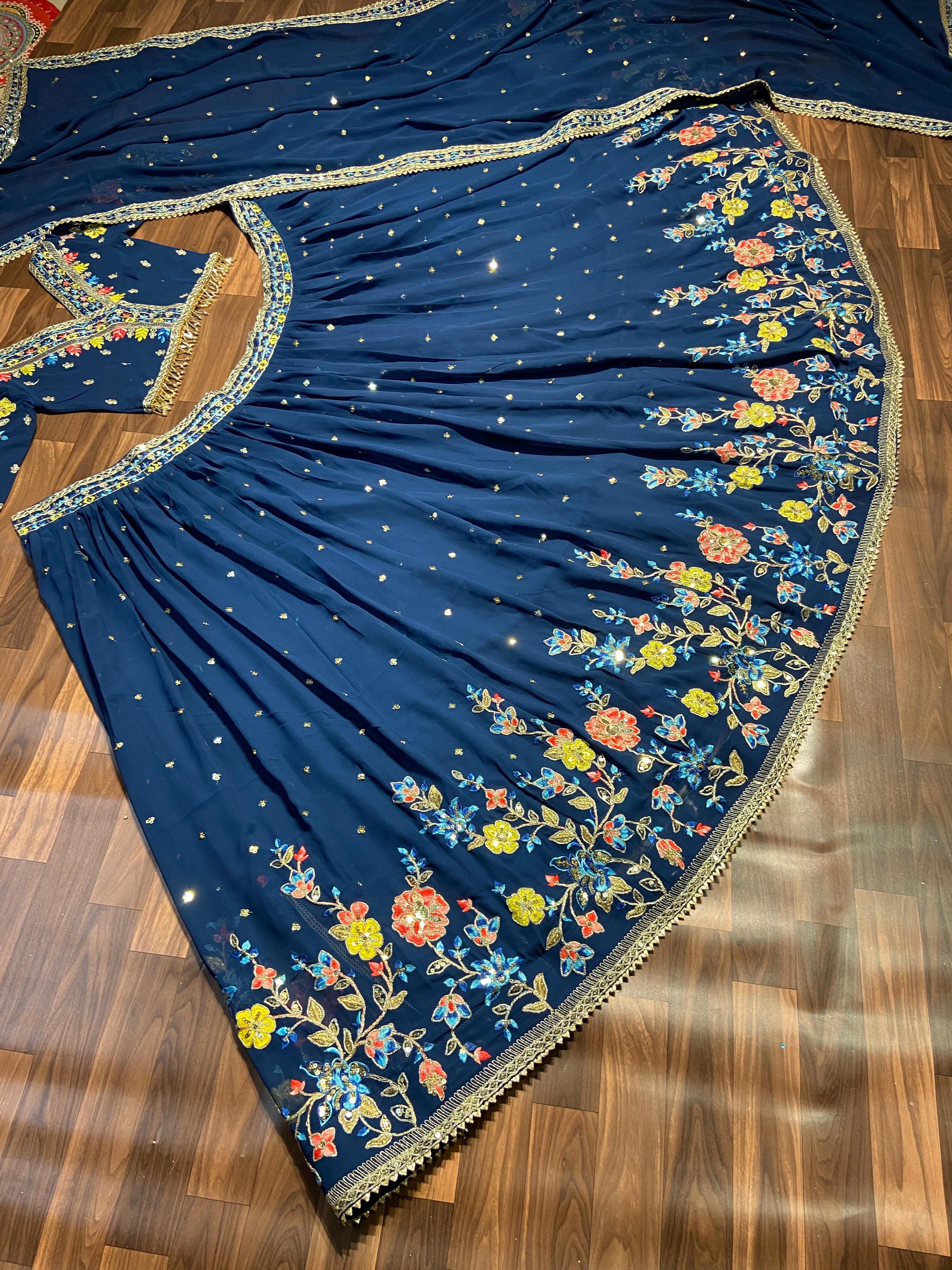 | Fabric | Faux Georgette Embellished With Multi Colour Thread Embroidery Work, Coding Work With Heavy Sequins Work |