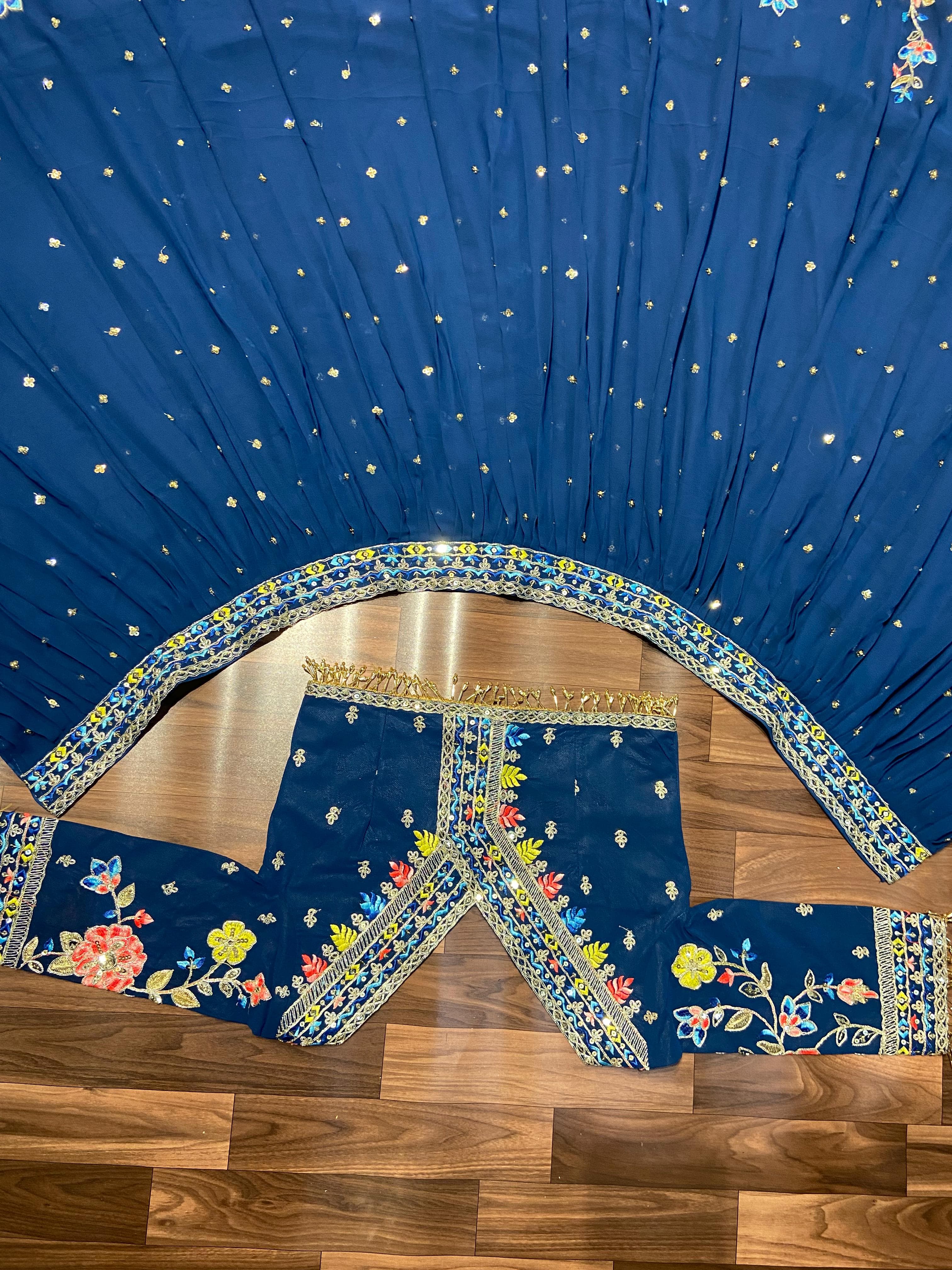 | Work | Embellished With Beautiful Multi Colour Thread Embroidery Work, Coding, And Heavy Sequins Work On Both Side Work Front And Back With Beautiful Latkan Lace With Sleeves |