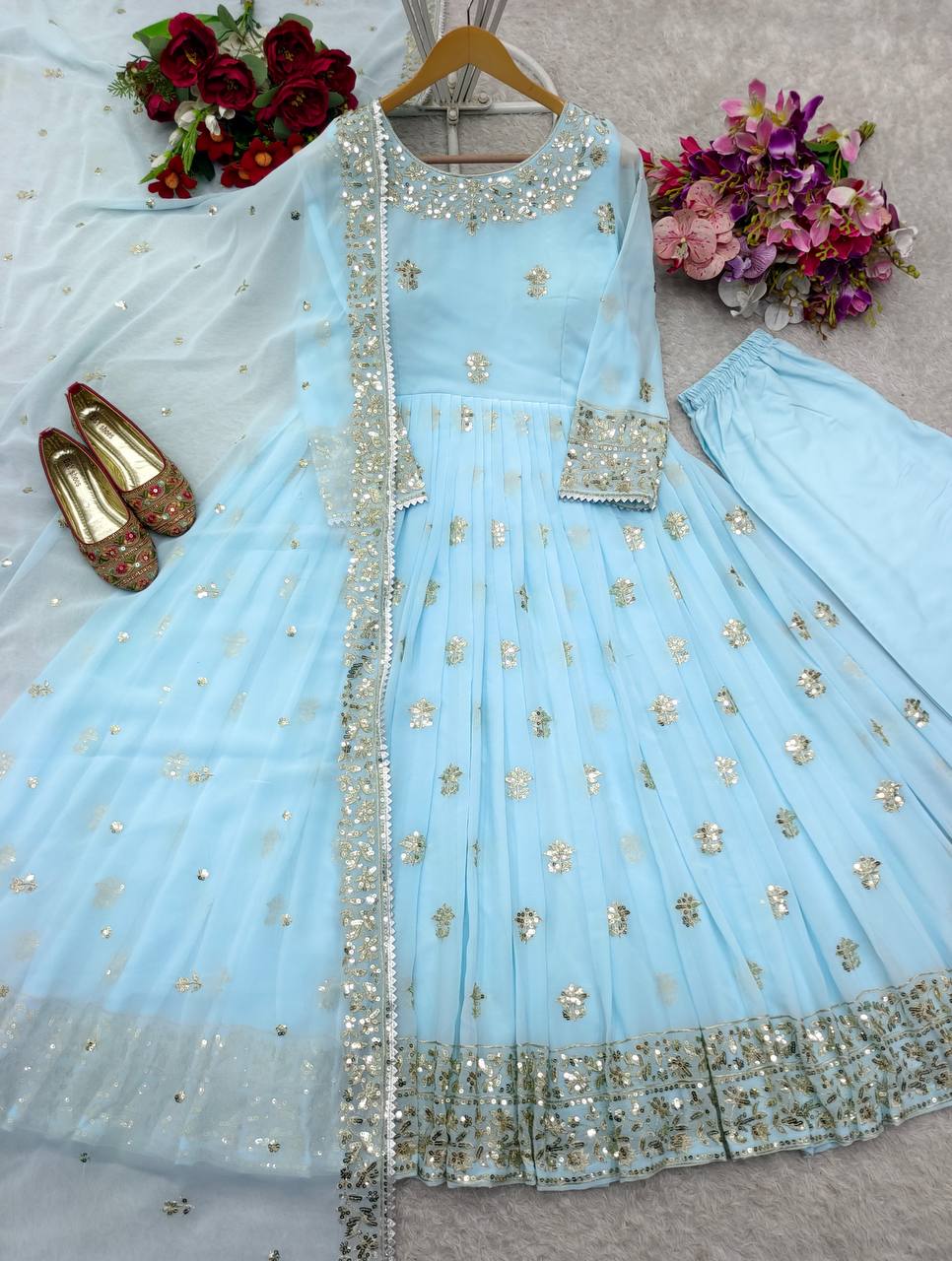 Beautiful Georgette Sequence Work Sky Blue Color Gown
