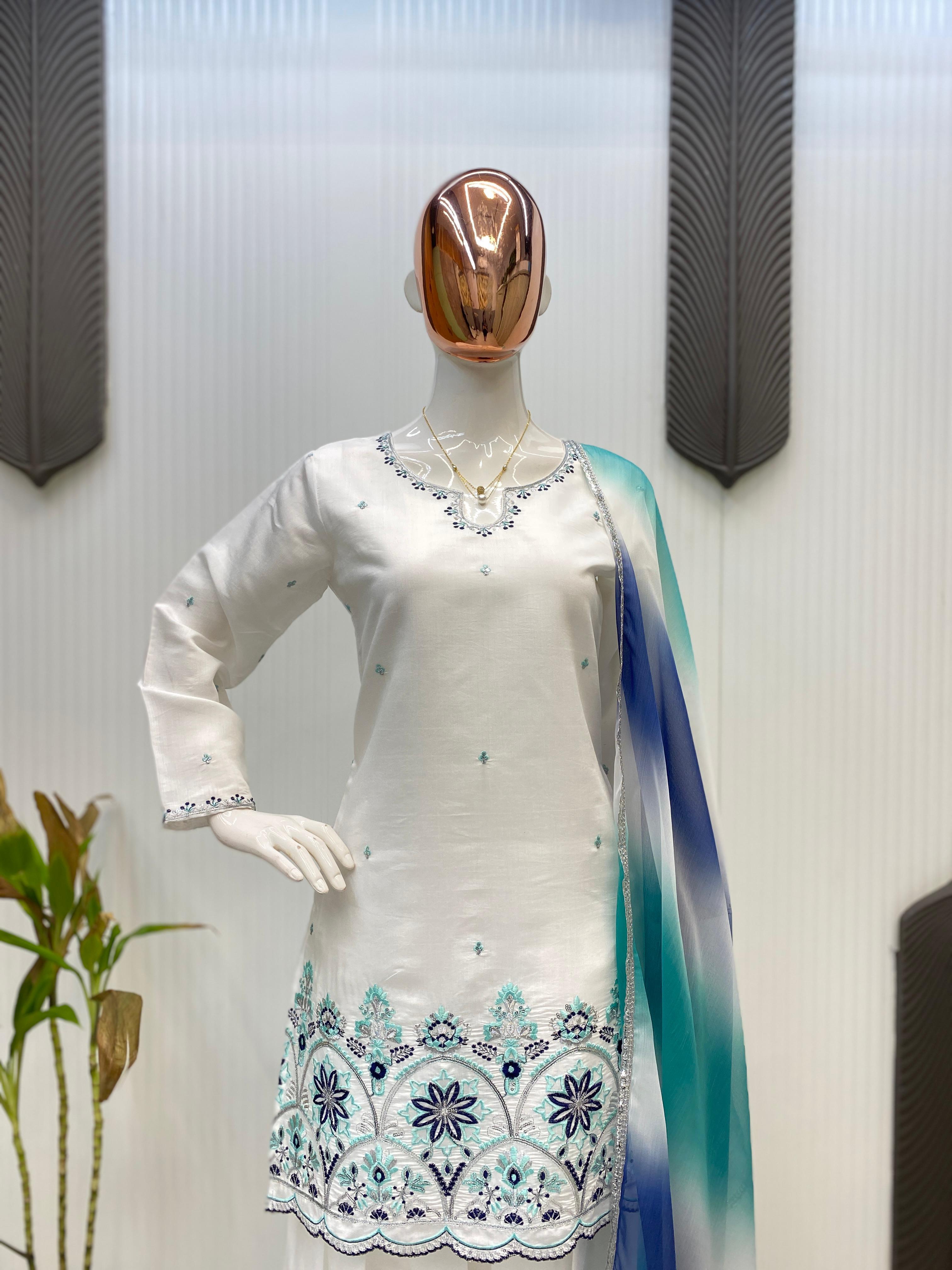 #dupatta : Silver Siffon With Printed Work (2.2 Mtr)
