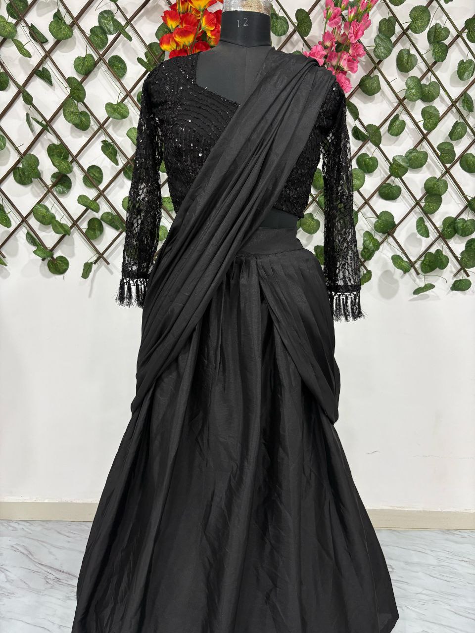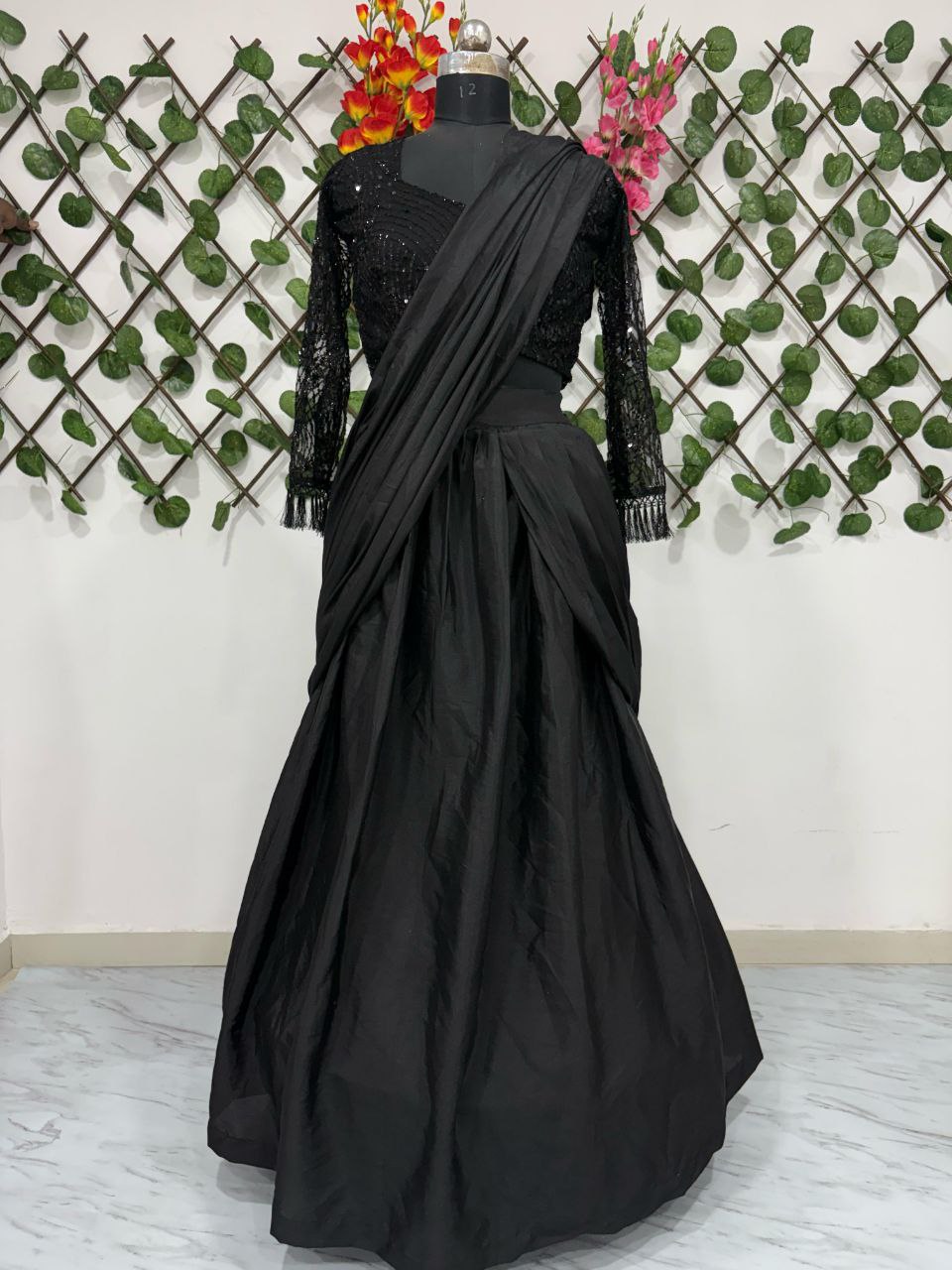 Lehenga Saree : *Premium Crape Silk With Flair 3+ MTR*( Full Stitched Upto Xl )