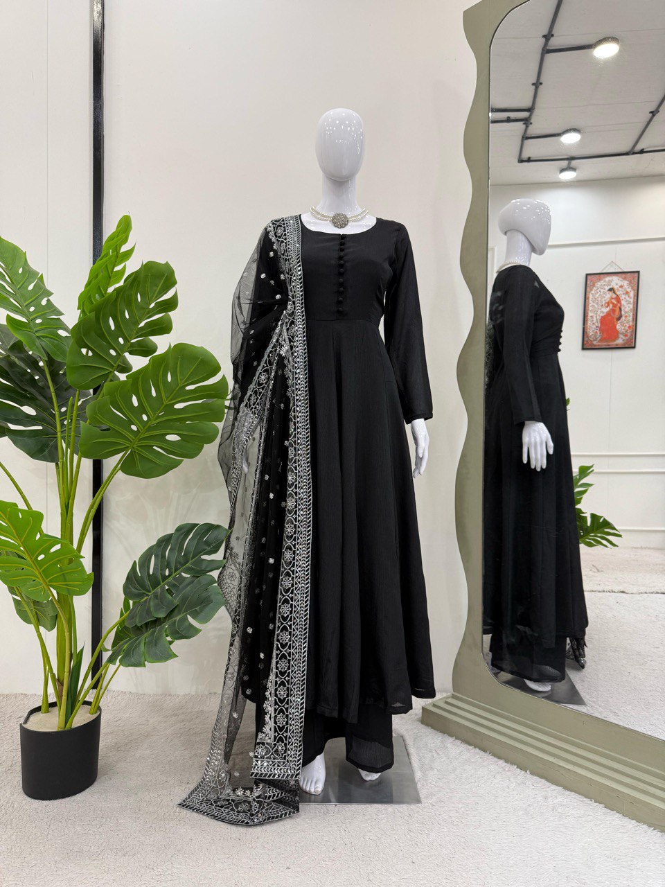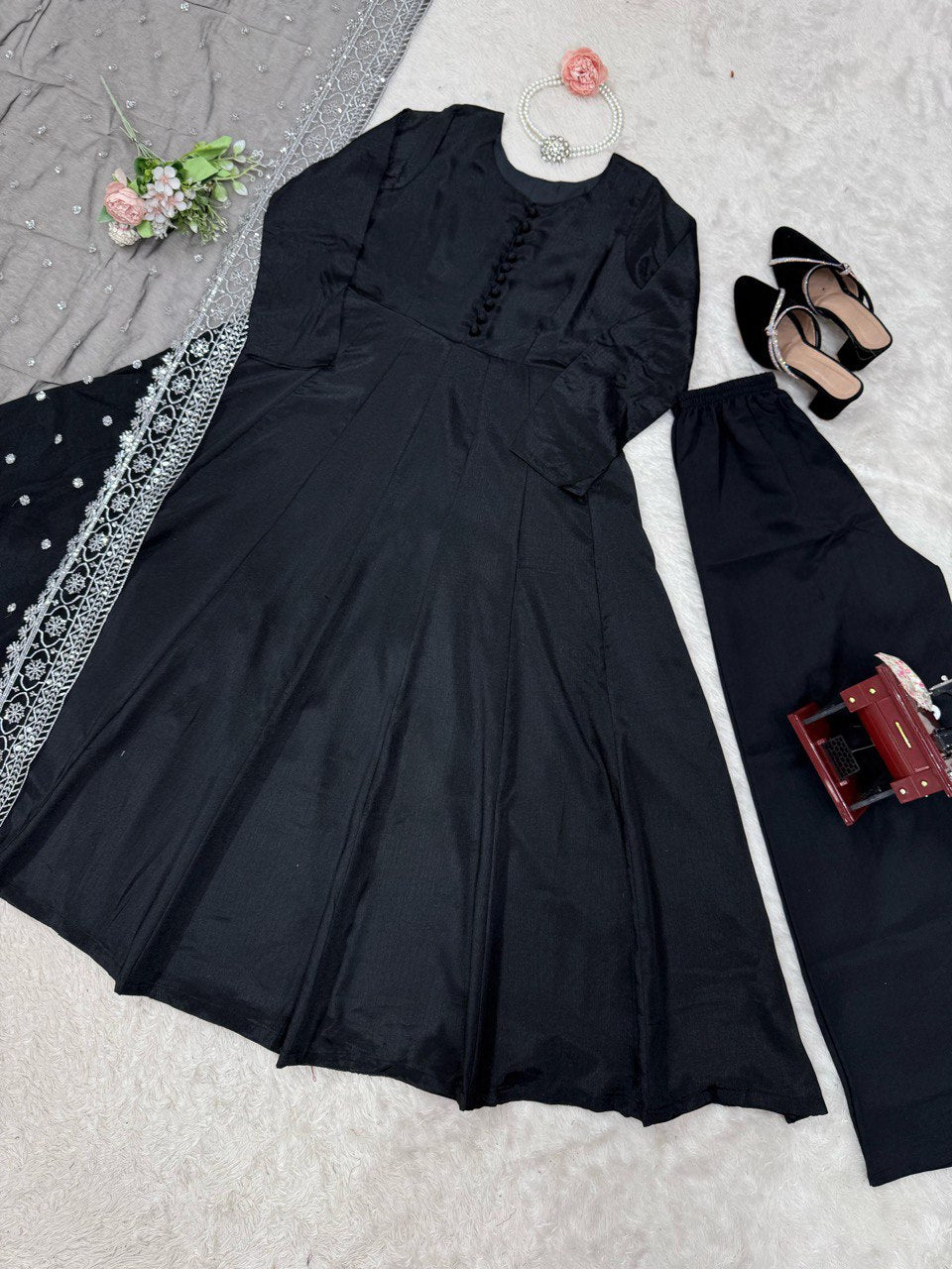 Black Color Plan Gown With Heavy Work Dupatta