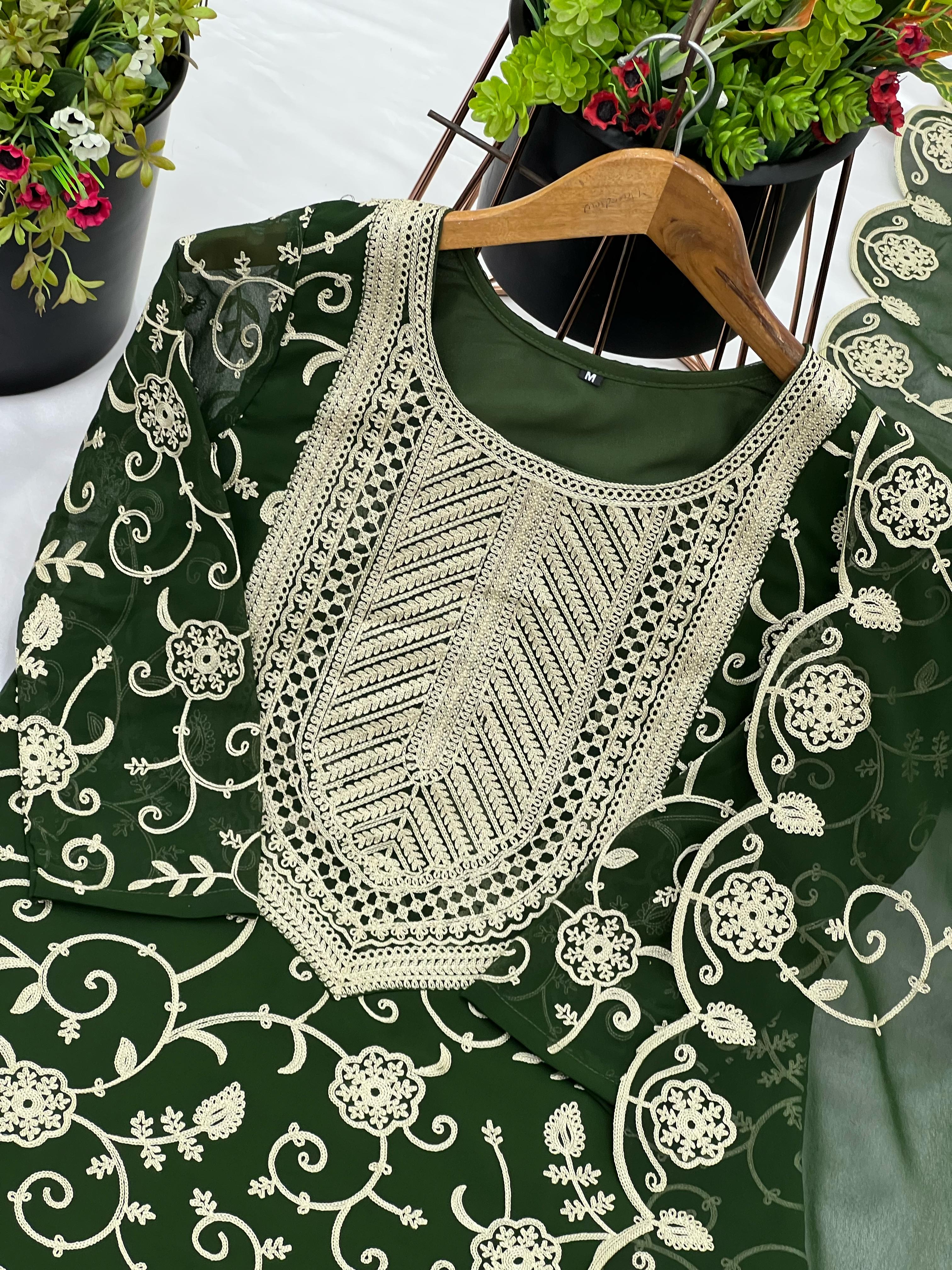 Captivating Georgette Embroidery Work Green Color Sharara Suit