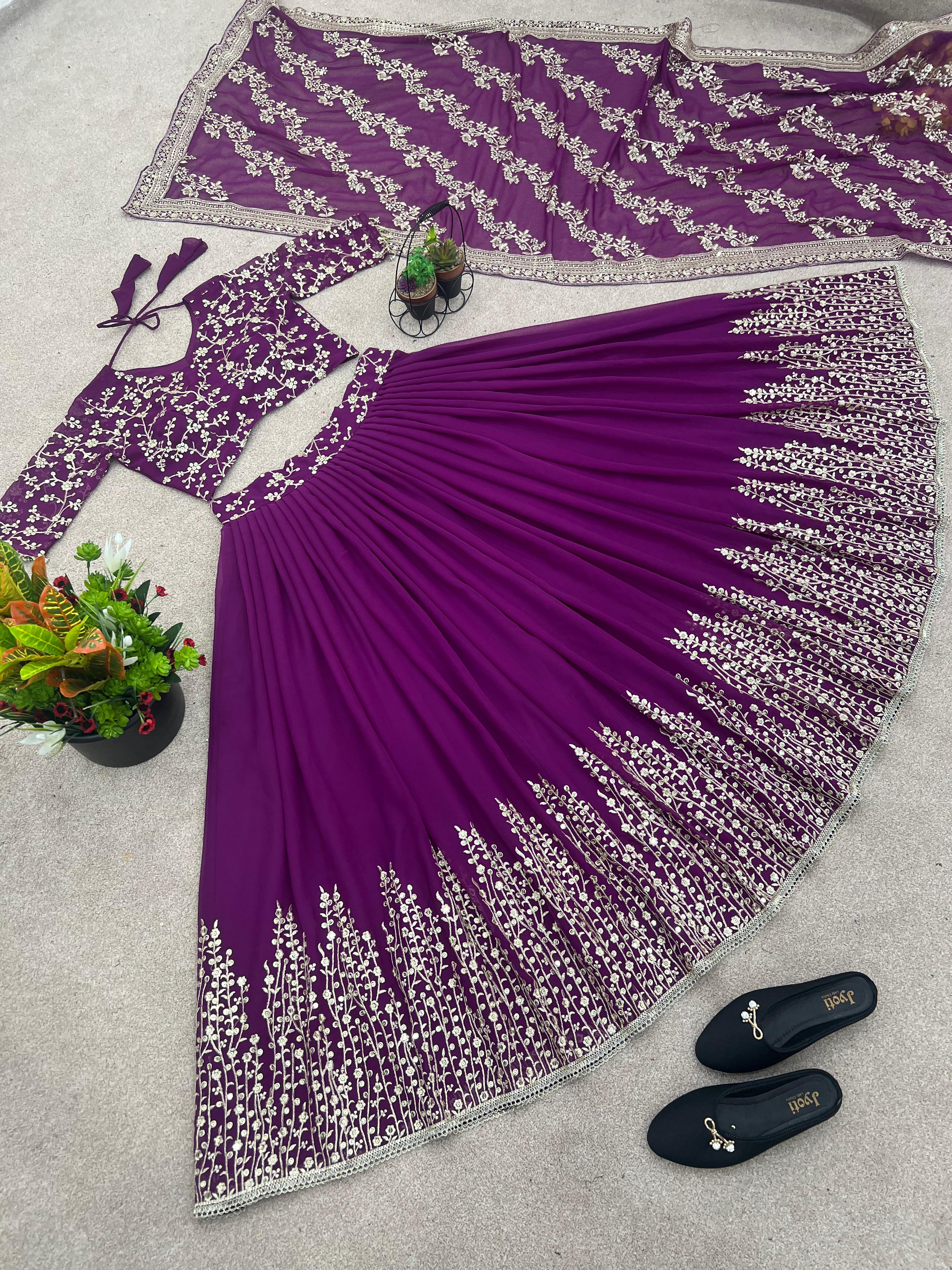Captivating Purple Color Heavy Embroidery Sequence Work Lehengha Choli