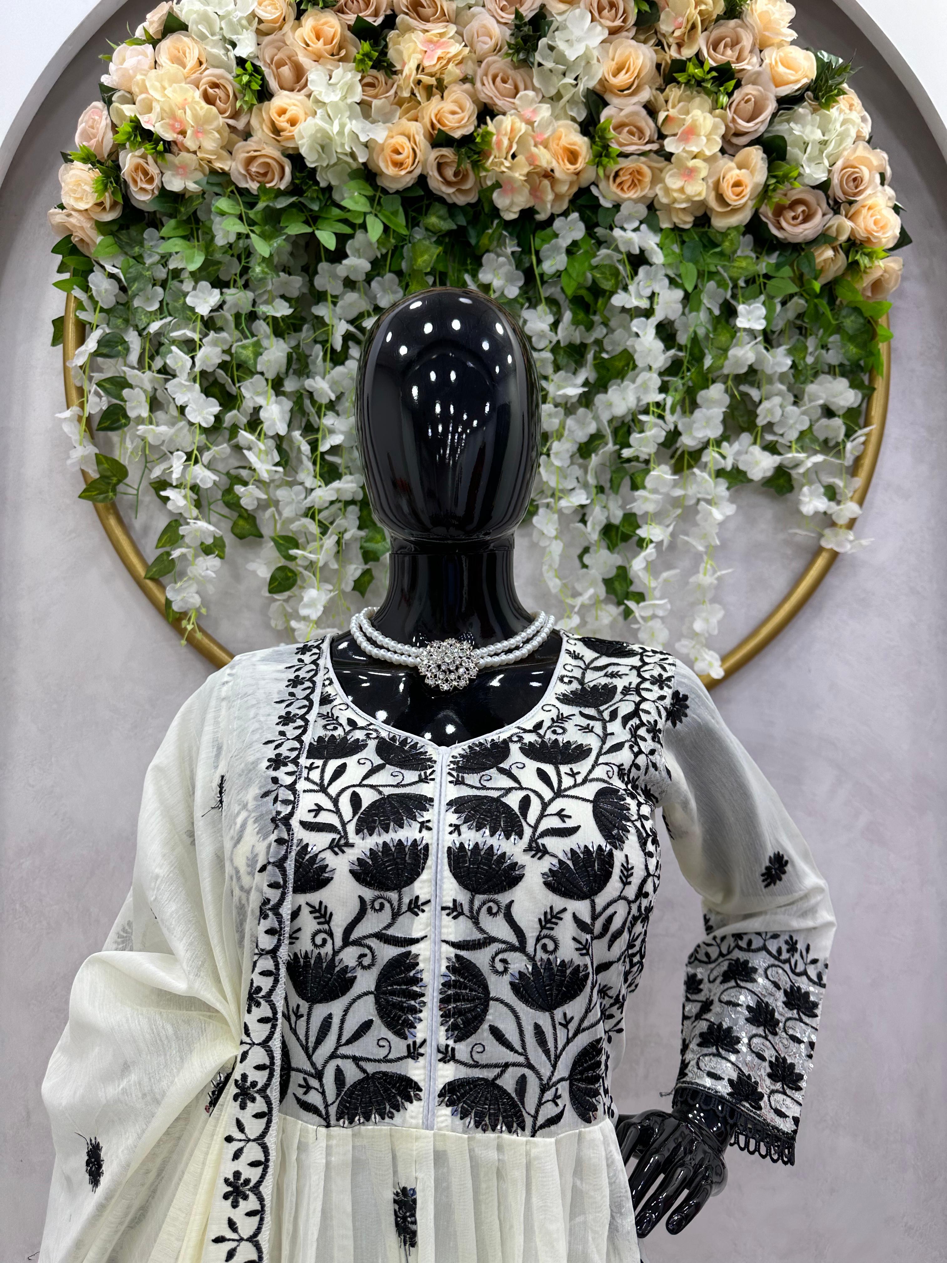 Captivating Thread With Sequences Work White Color Anarkali Suit