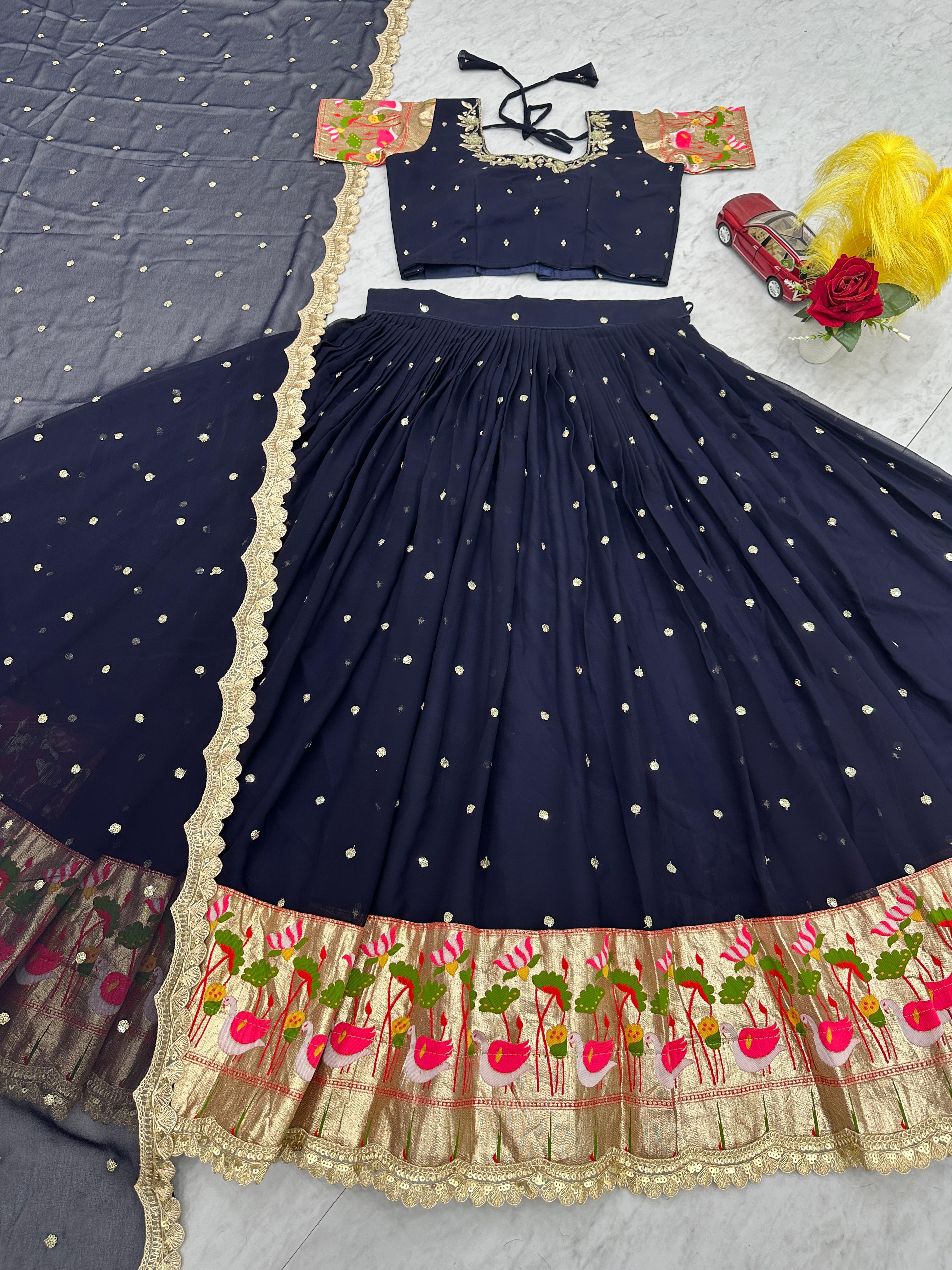Casual Wear Sequence Work Navy Blue Color Lehenga Choli