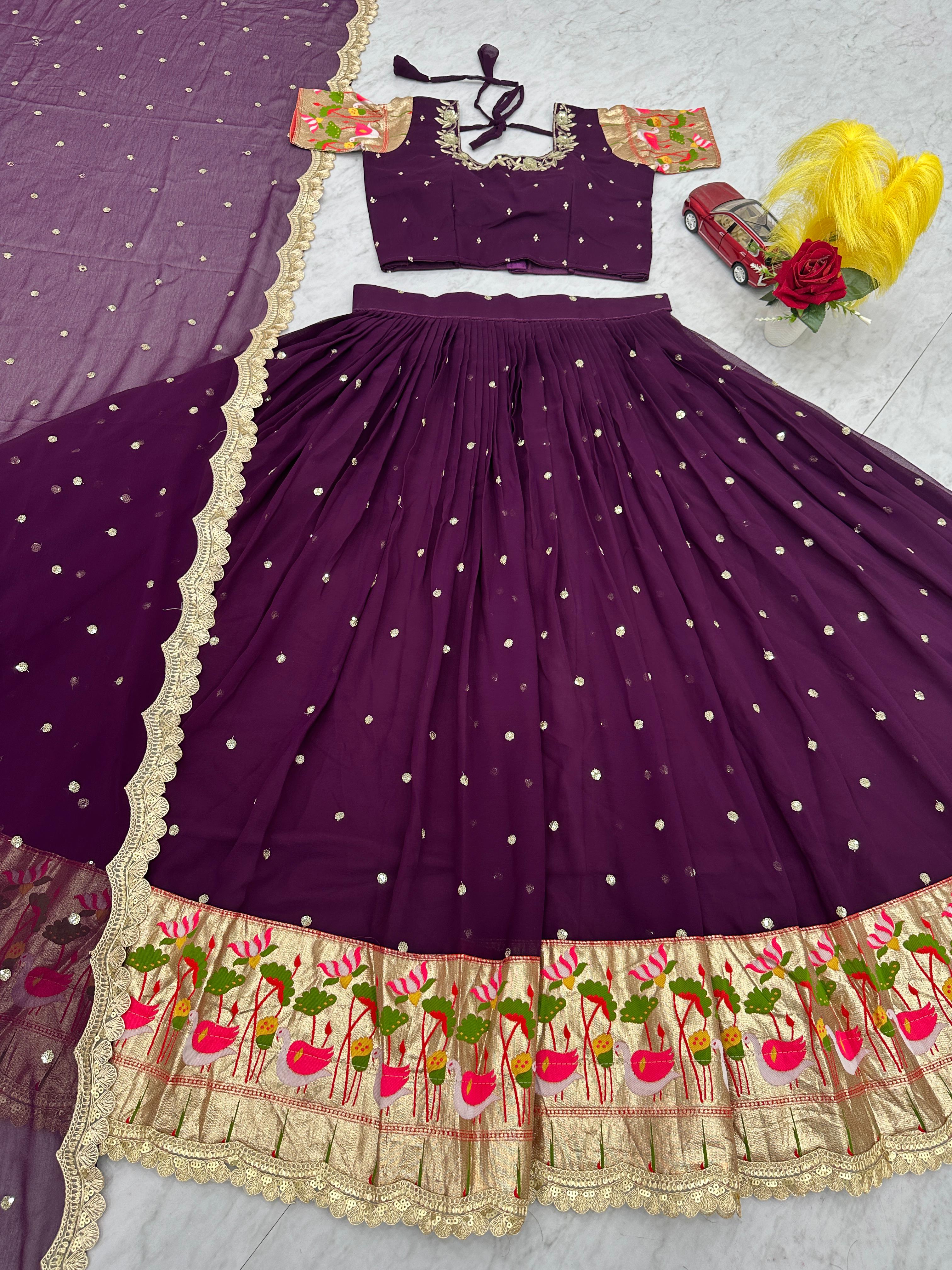 Casual Wear Sequence Work Wine Color Lehenga Choli