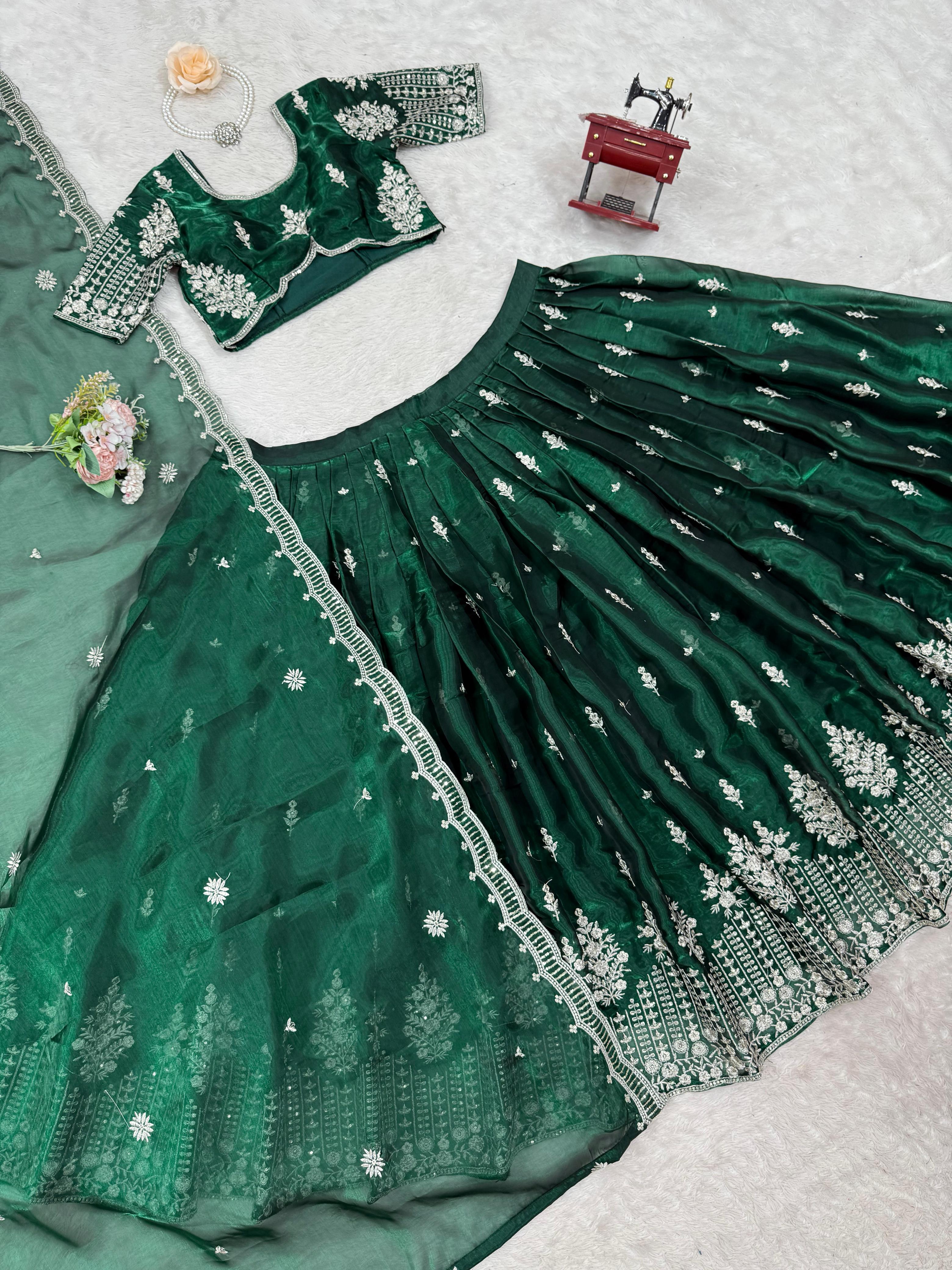 Ceremony Wear Heavy Work Green Color Lehenga Choli