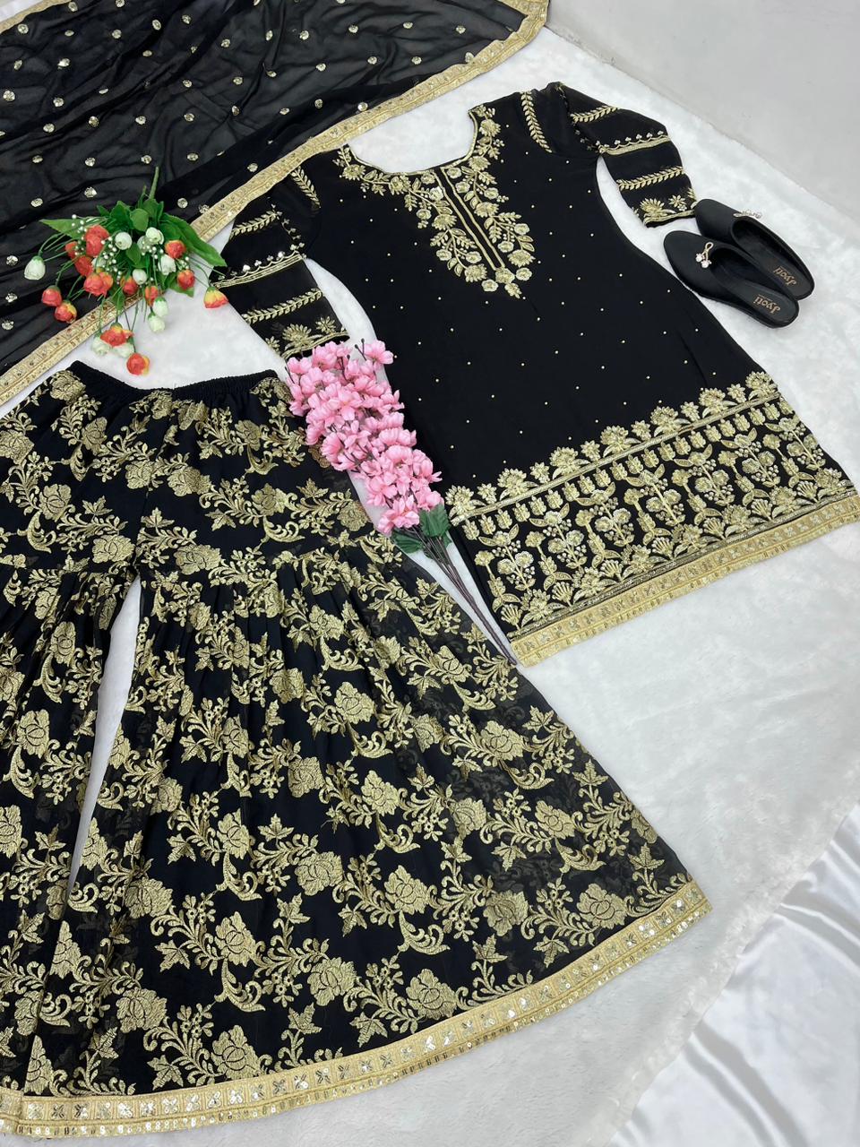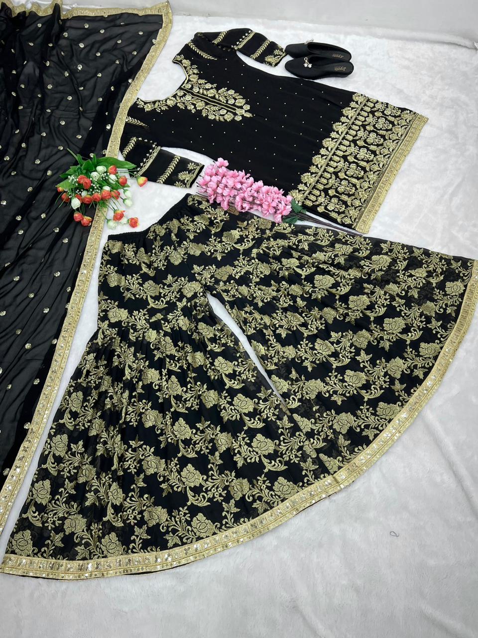 | Sharara Work | 5mm Embroidery Sequence Work With Fully Flair |