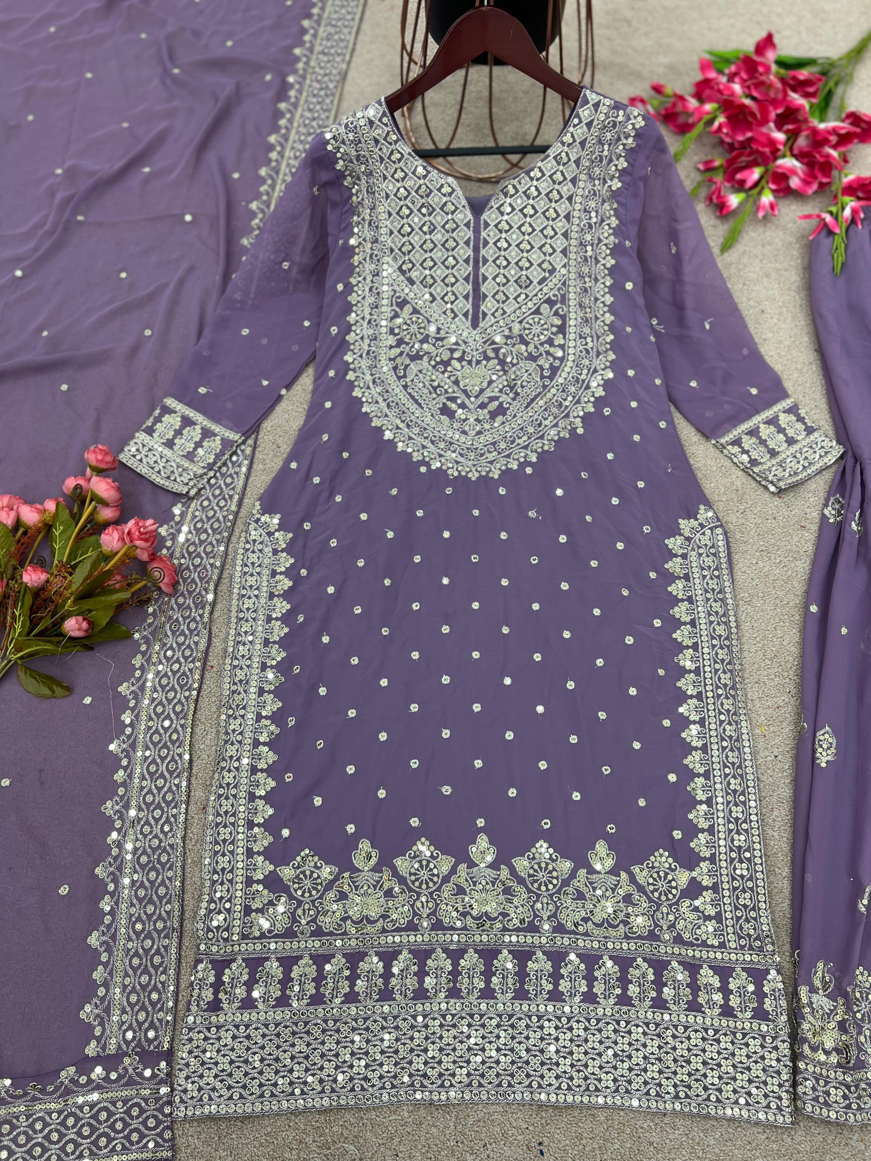 Decent Embroidery Sequence Work Onion Color Sharara Suit