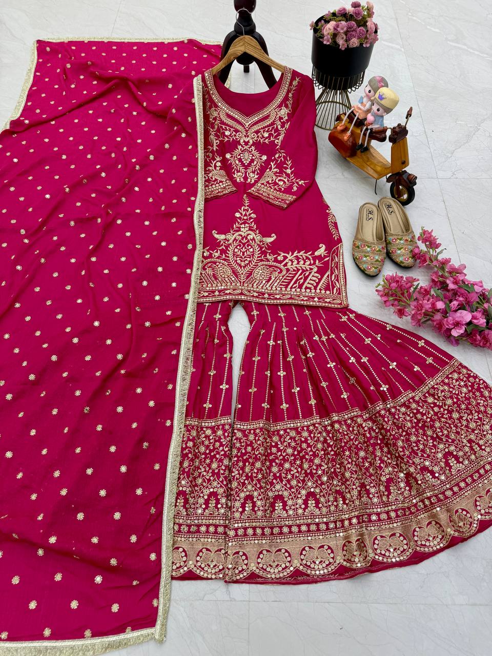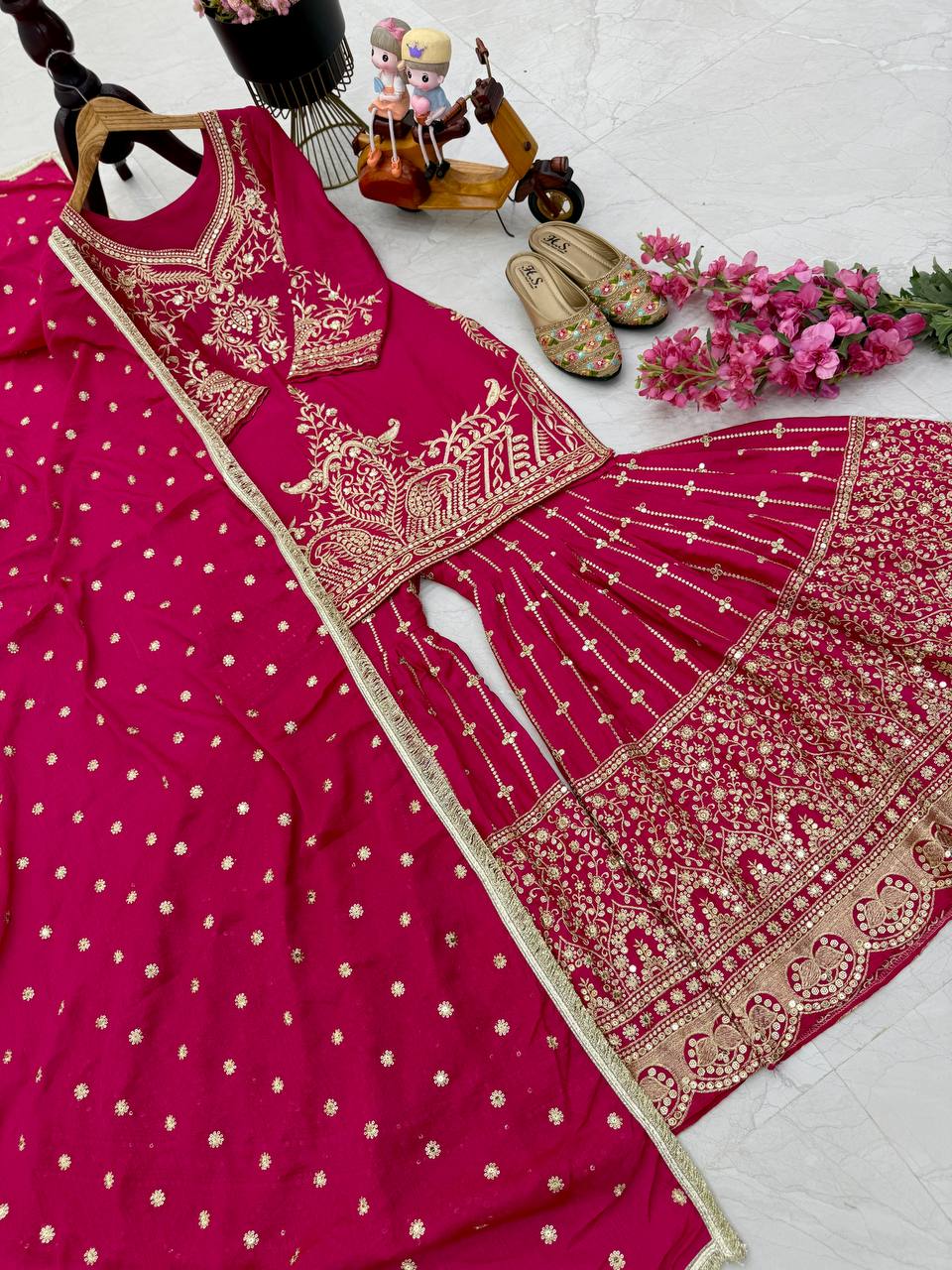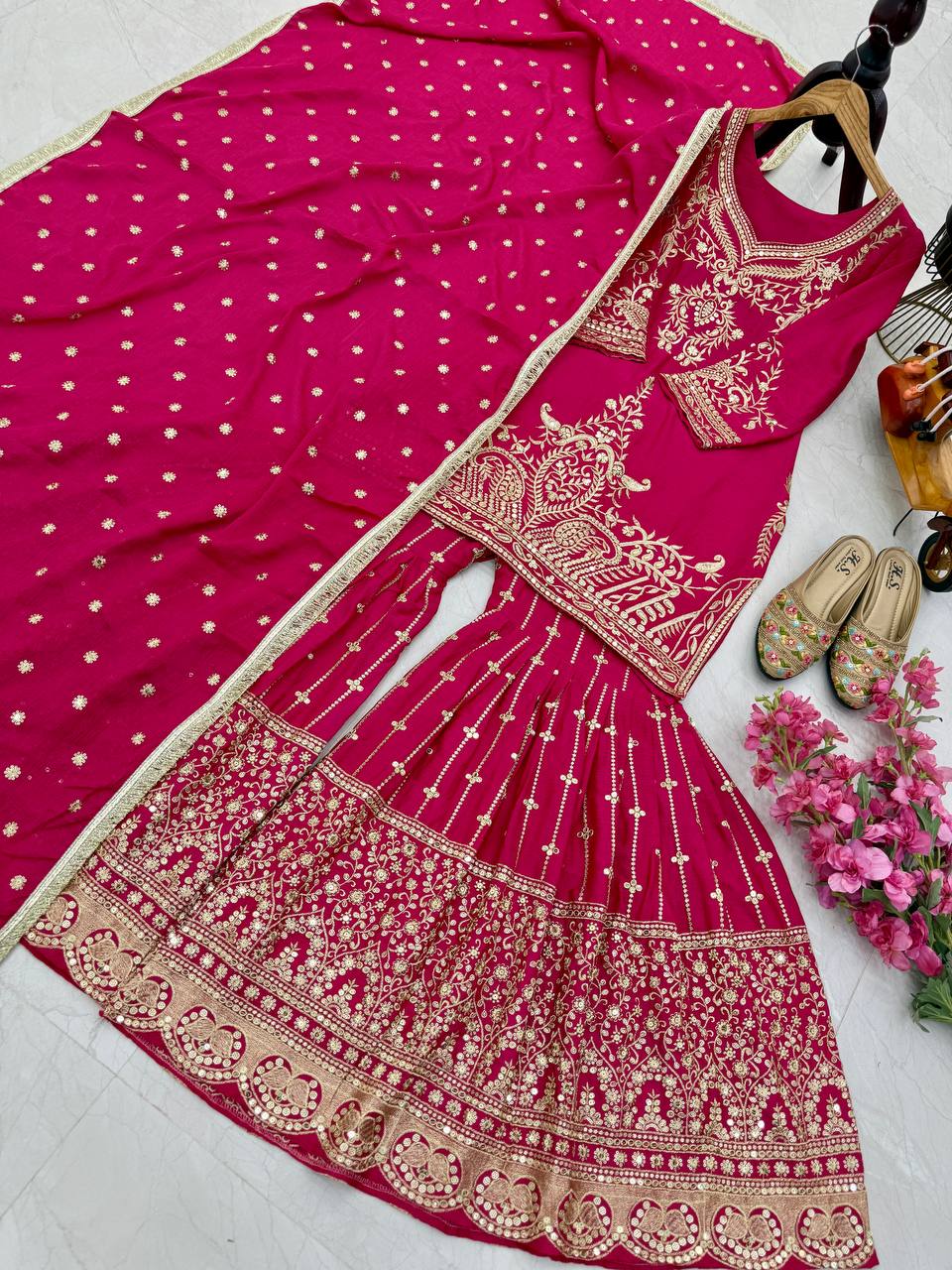 Designer Heavy Sequence Work Pink Sharara Suit