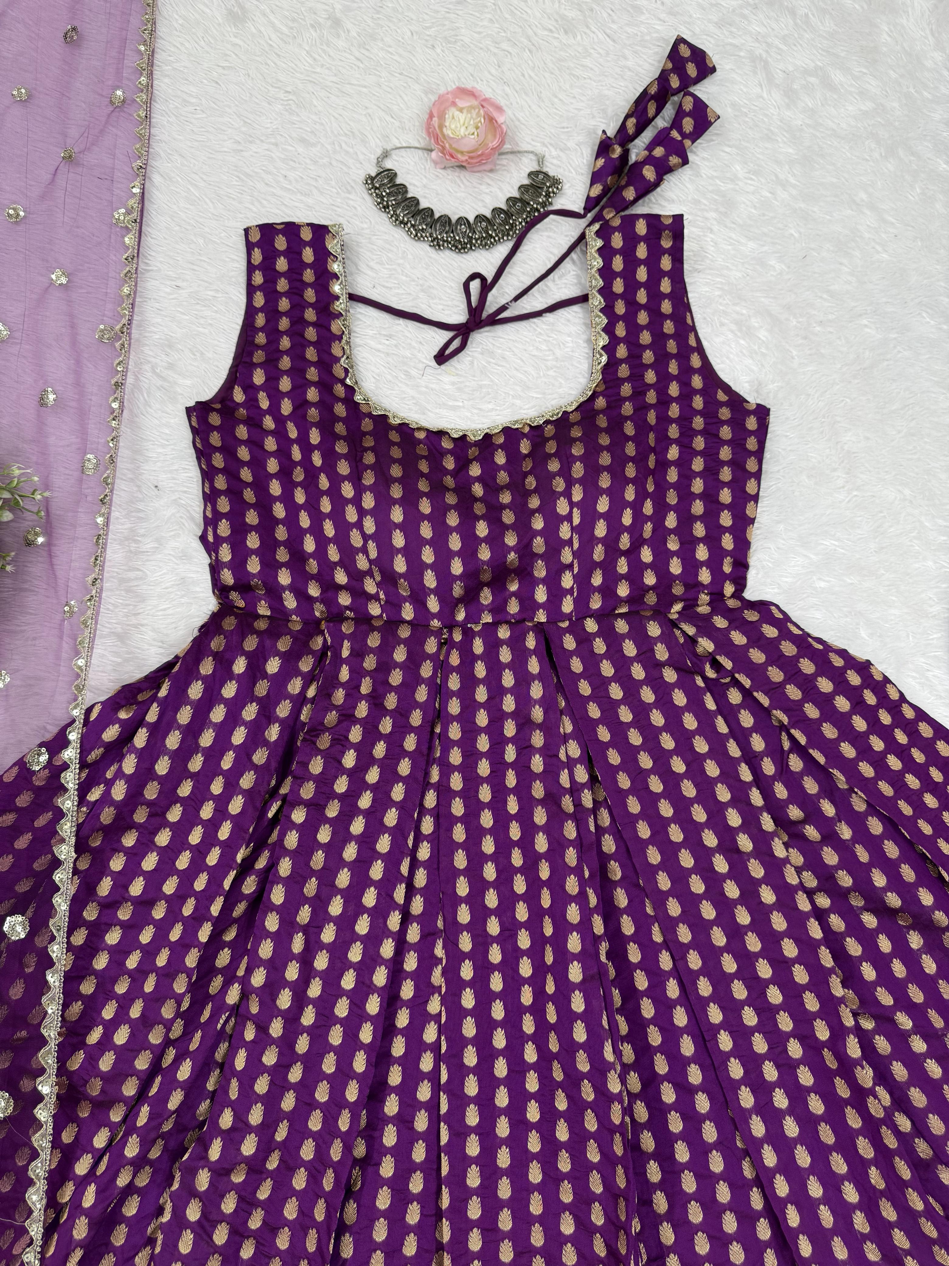 Designer Jacquard Silk Purple Color Gown With Dupatta