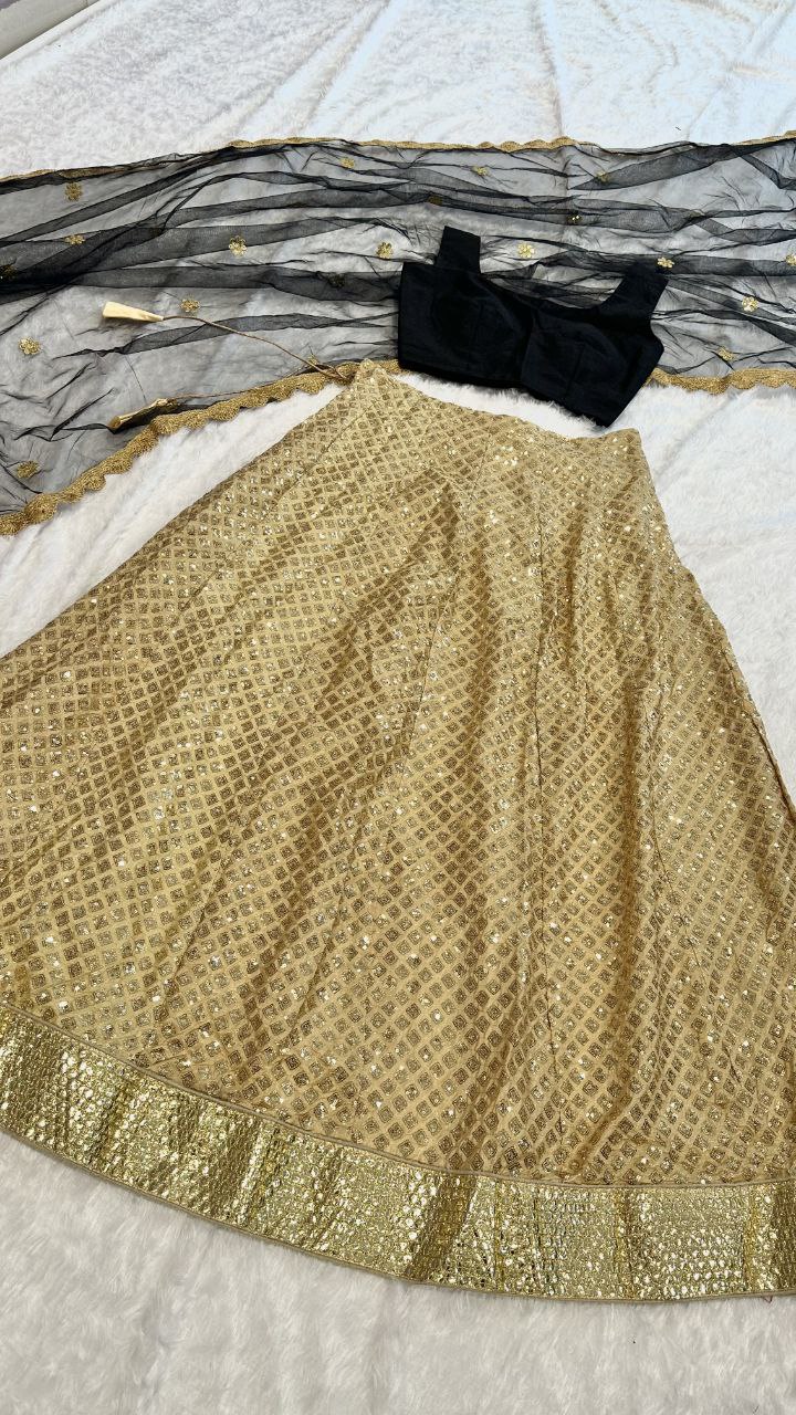 | Fabric |  Net Dupatta with sequins work & jhalar border work |