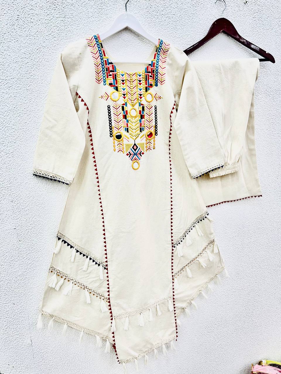 Designer White Khadi Cotton Embroidery Work Co-ord Set