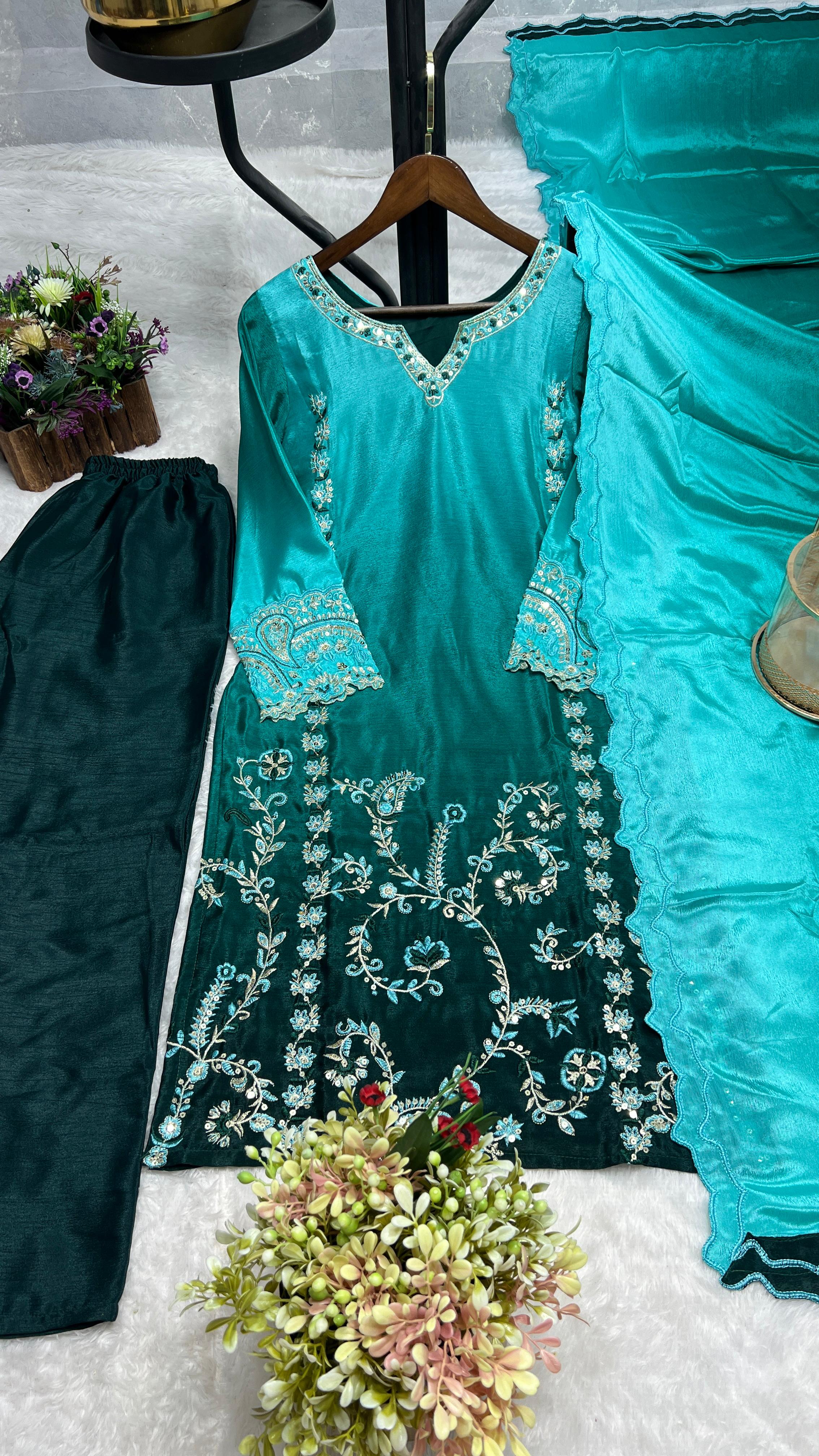 ➡️fabric :- Beautiful Padding Two Colour Effect Chinon Silk.