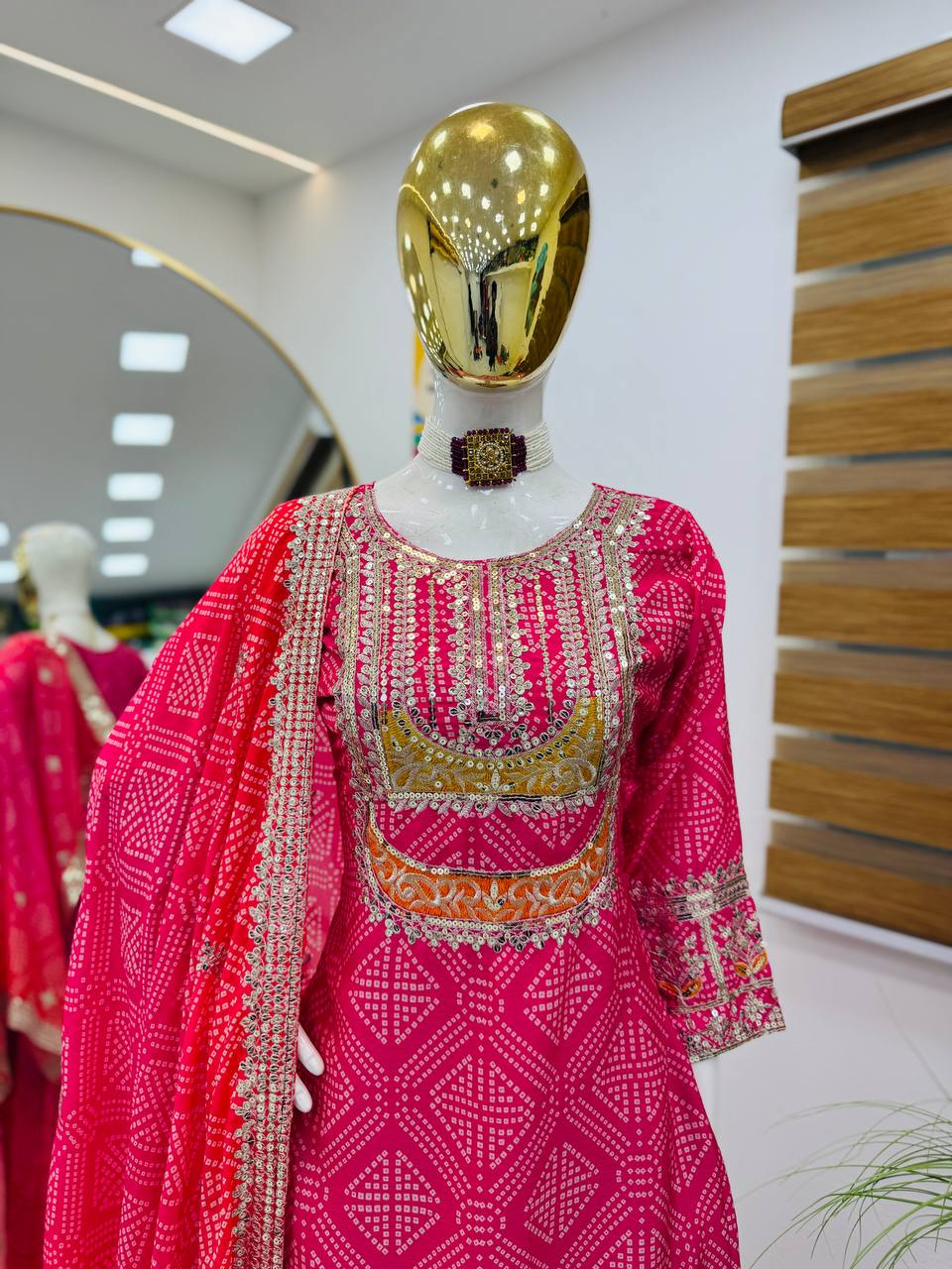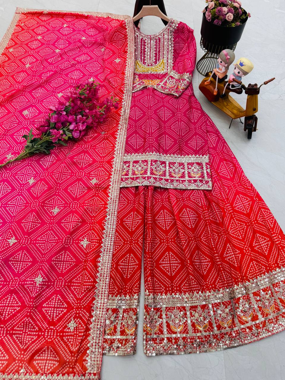 Exclusive Chinon Silk Pink Color Sharara Suit