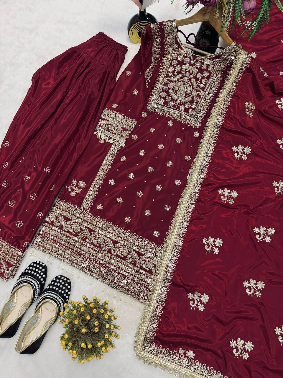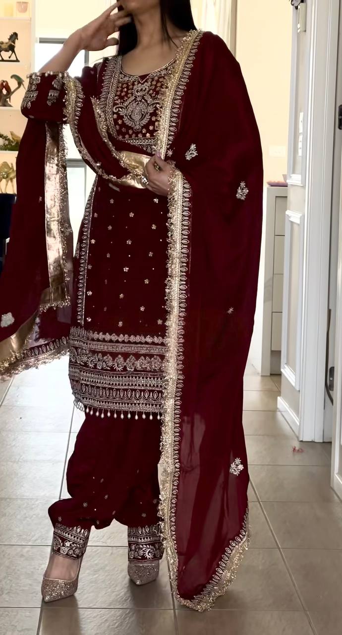 Exclusive Maroon Crep Silk Embroidered Panjabi Suit
