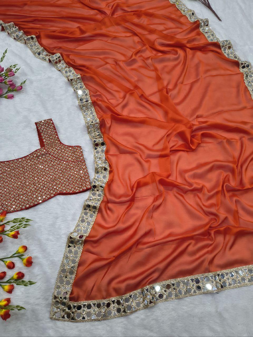 👗 Premium Rangoli Silk Saree Embellished With Beautiful Heavy Real Mirror Work Lace Border