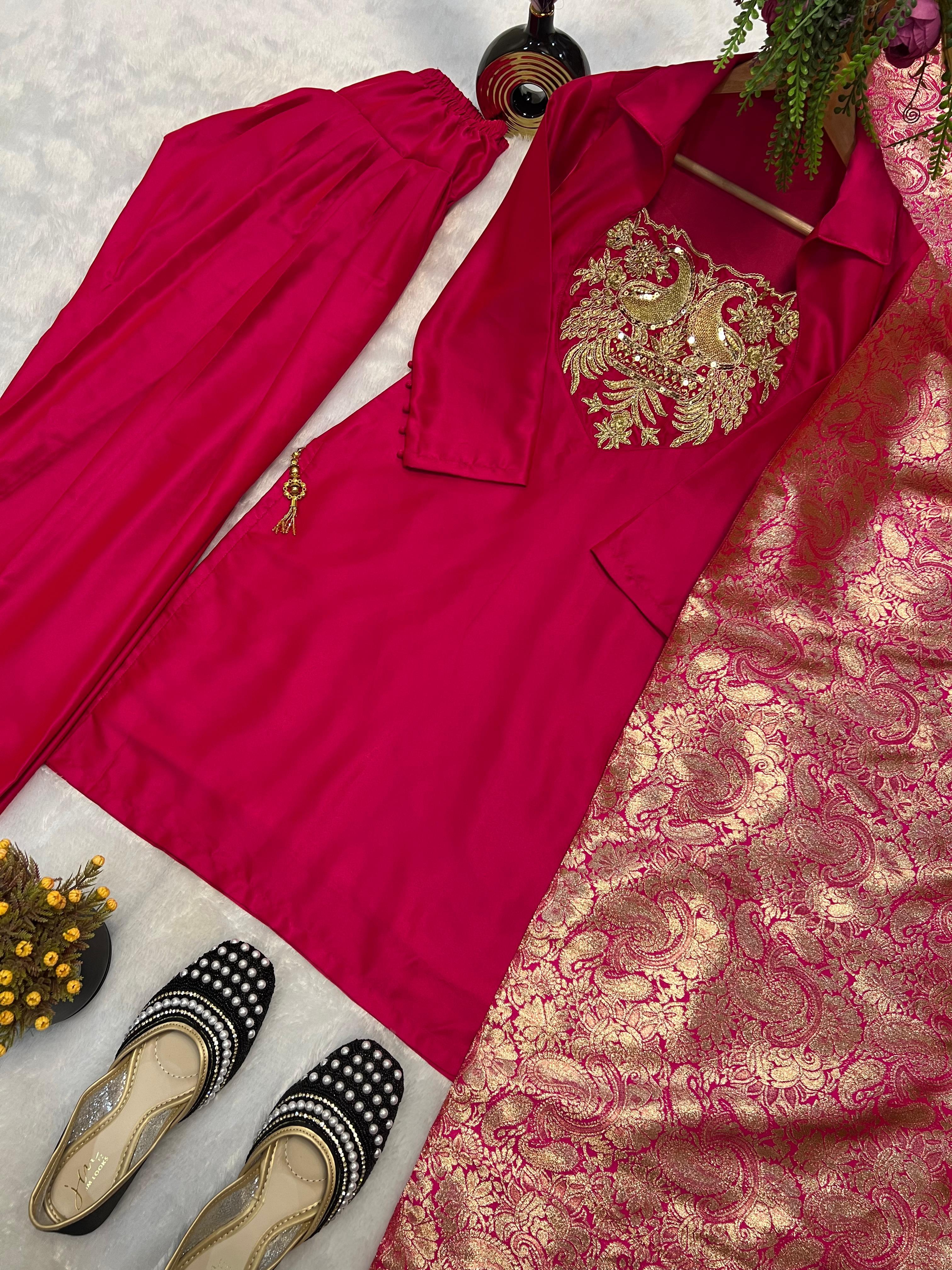 Top Fabric: Heavy Malay Satin Silk With Embroidery Sequence Work With Sleeve Fancy Latkan Less.