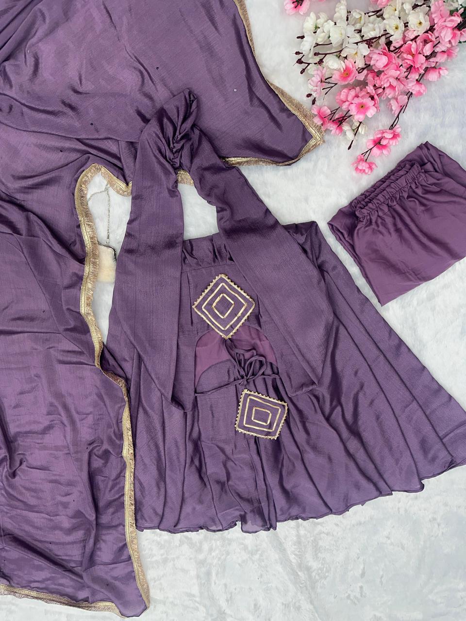 Fabulous Chinnon Silk Lavender Color Anarkali Gown