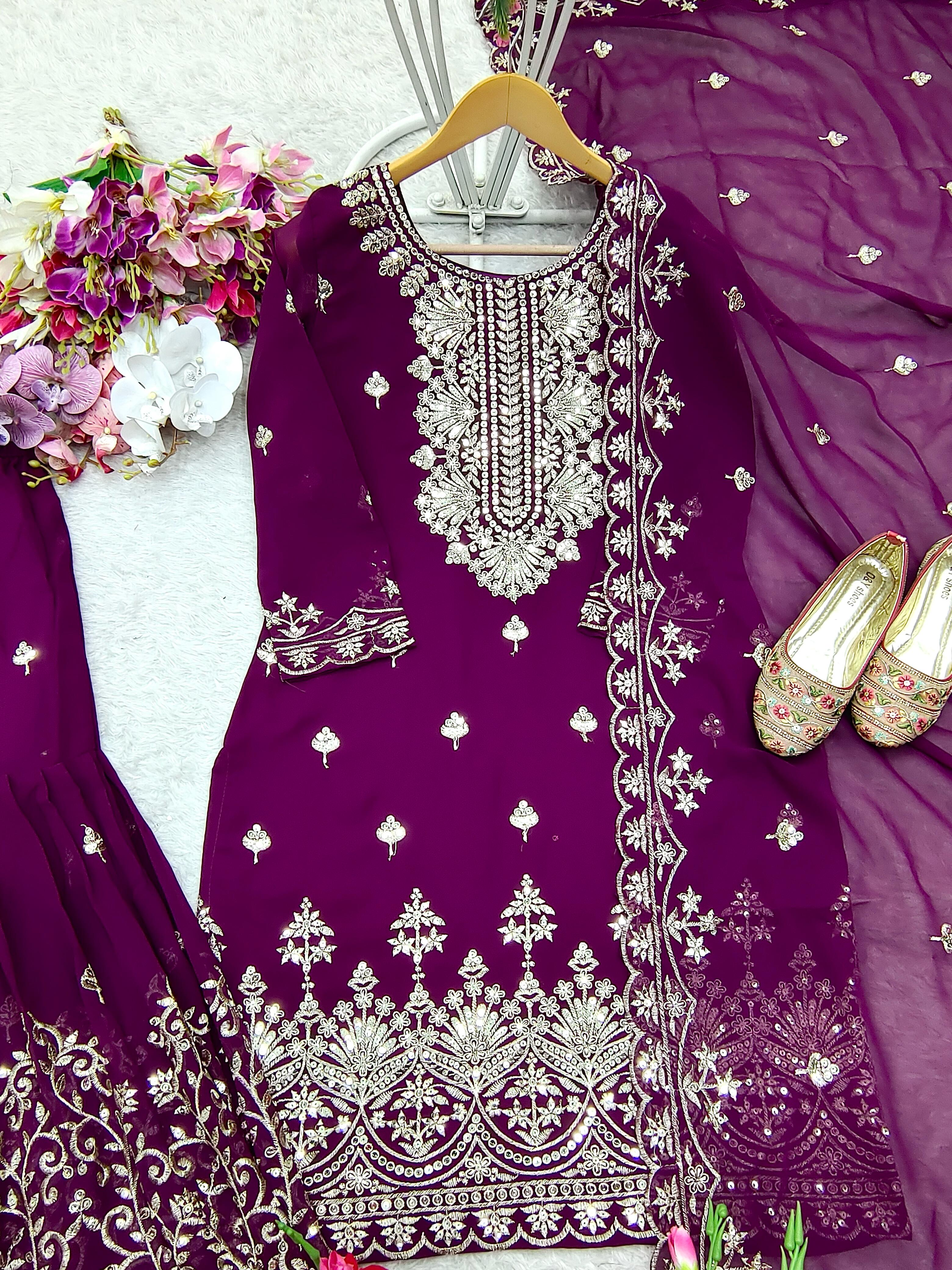 Top Fabric : Pure Fox Georgette With Heavy Embroidery 5mm Sequence Work With Sleeves