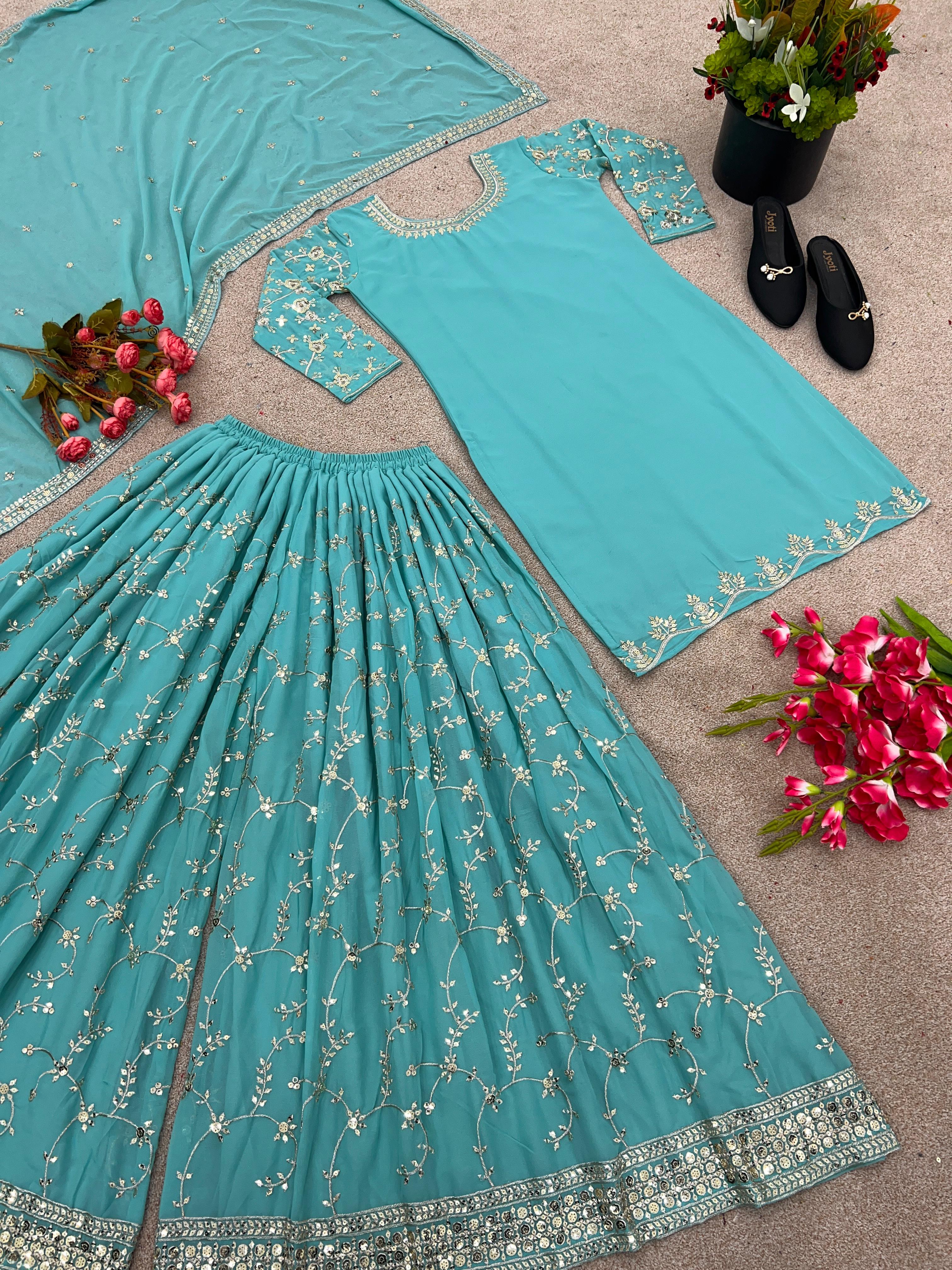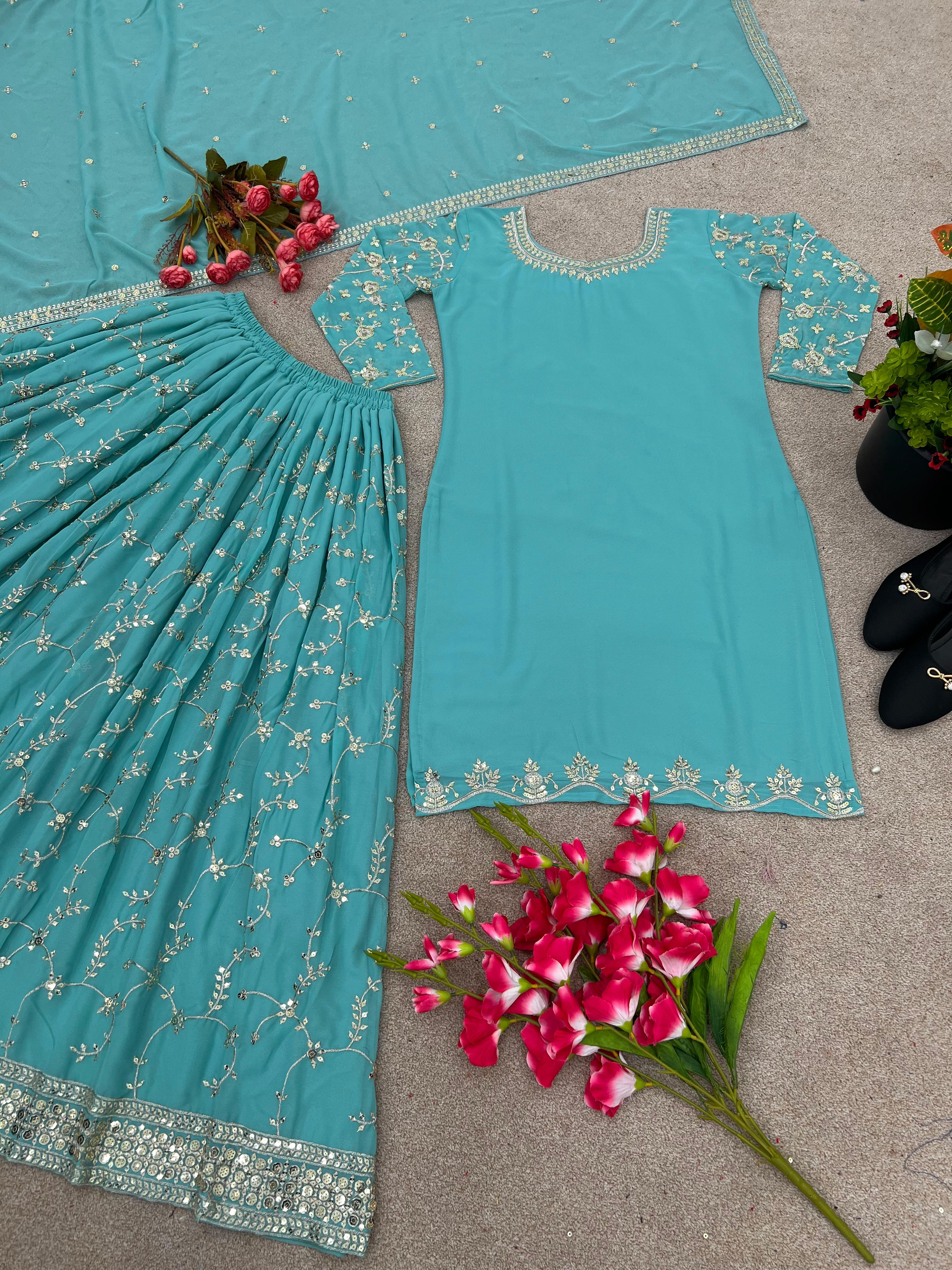| Work      |  Embroidery Sequence Work And Lace Border  |