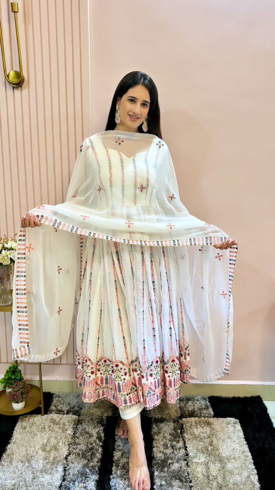Fashionable Multi Embroidery Work White Color Suit