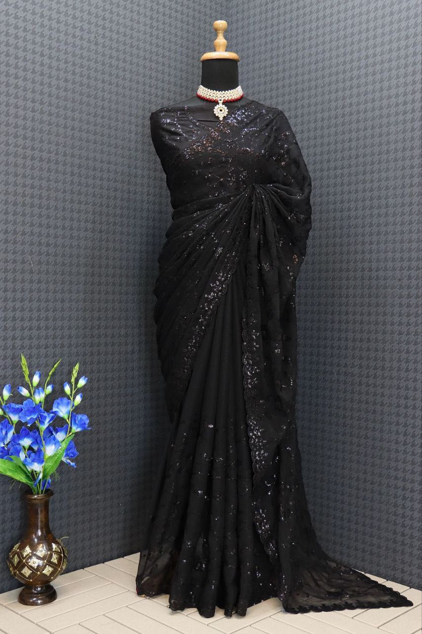 *🛑SAREE WORK-* Seqwance work with cut work border