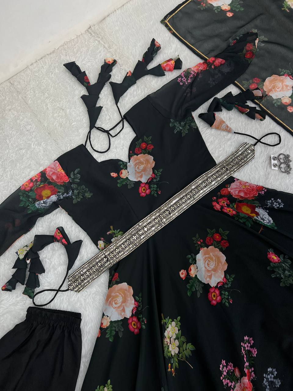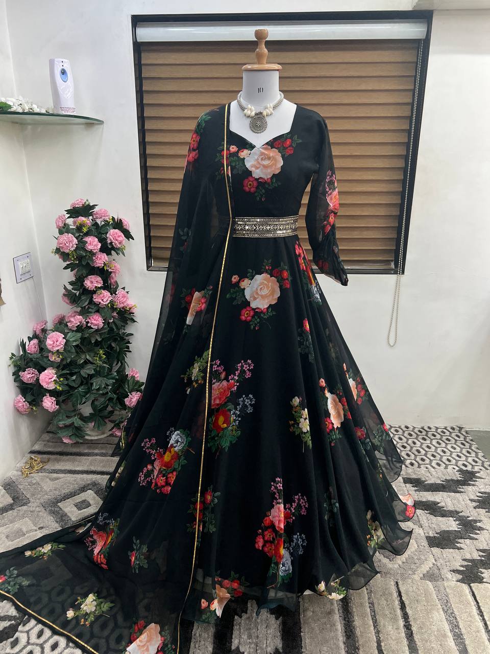 | Work | Digital Print And Attached Pad With Full Sleeve And Full Heavy Latkan Dori With Belt |