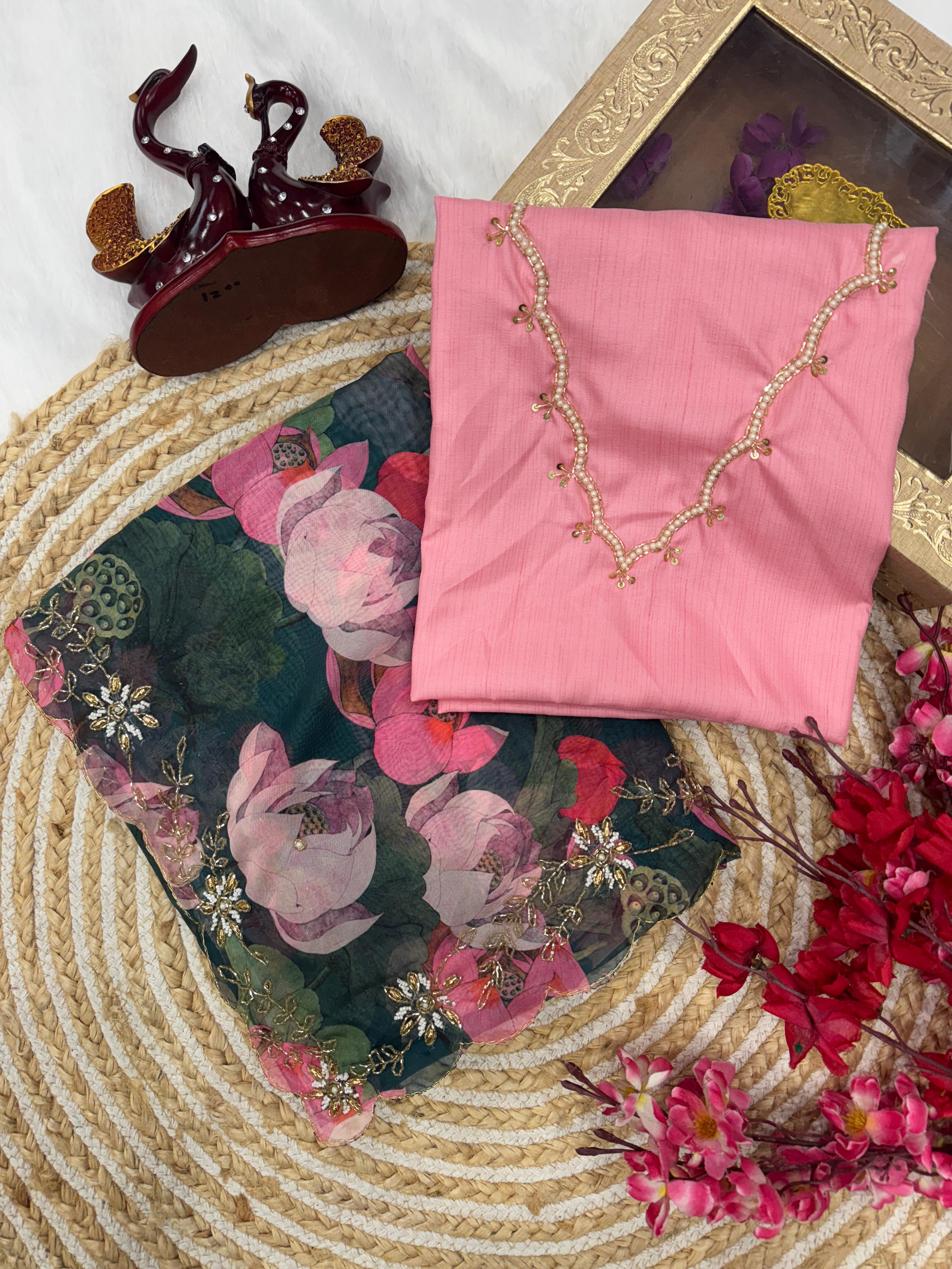 ⭕ WORK : Beautiful floral print with katdana and pearls handwork