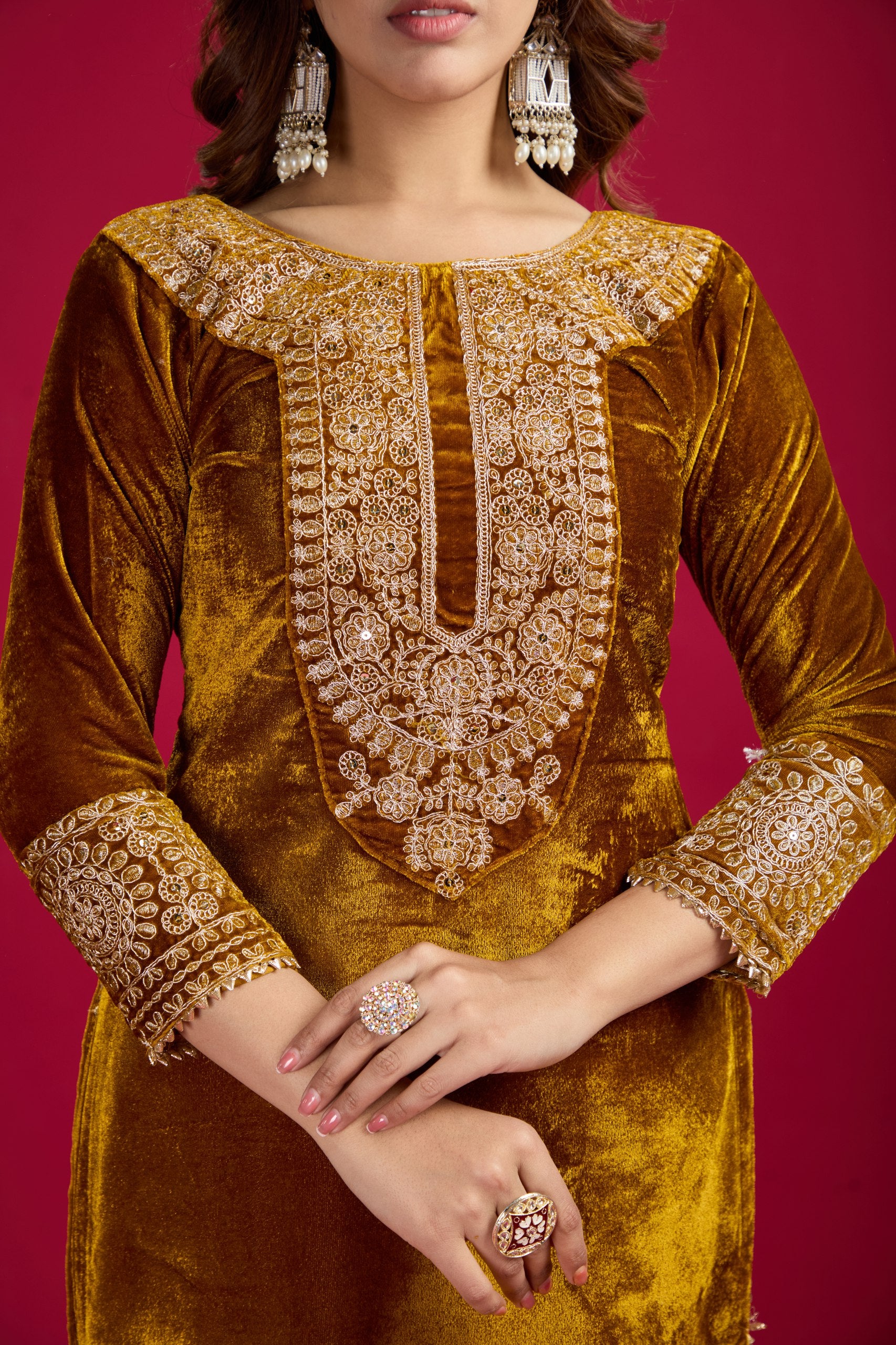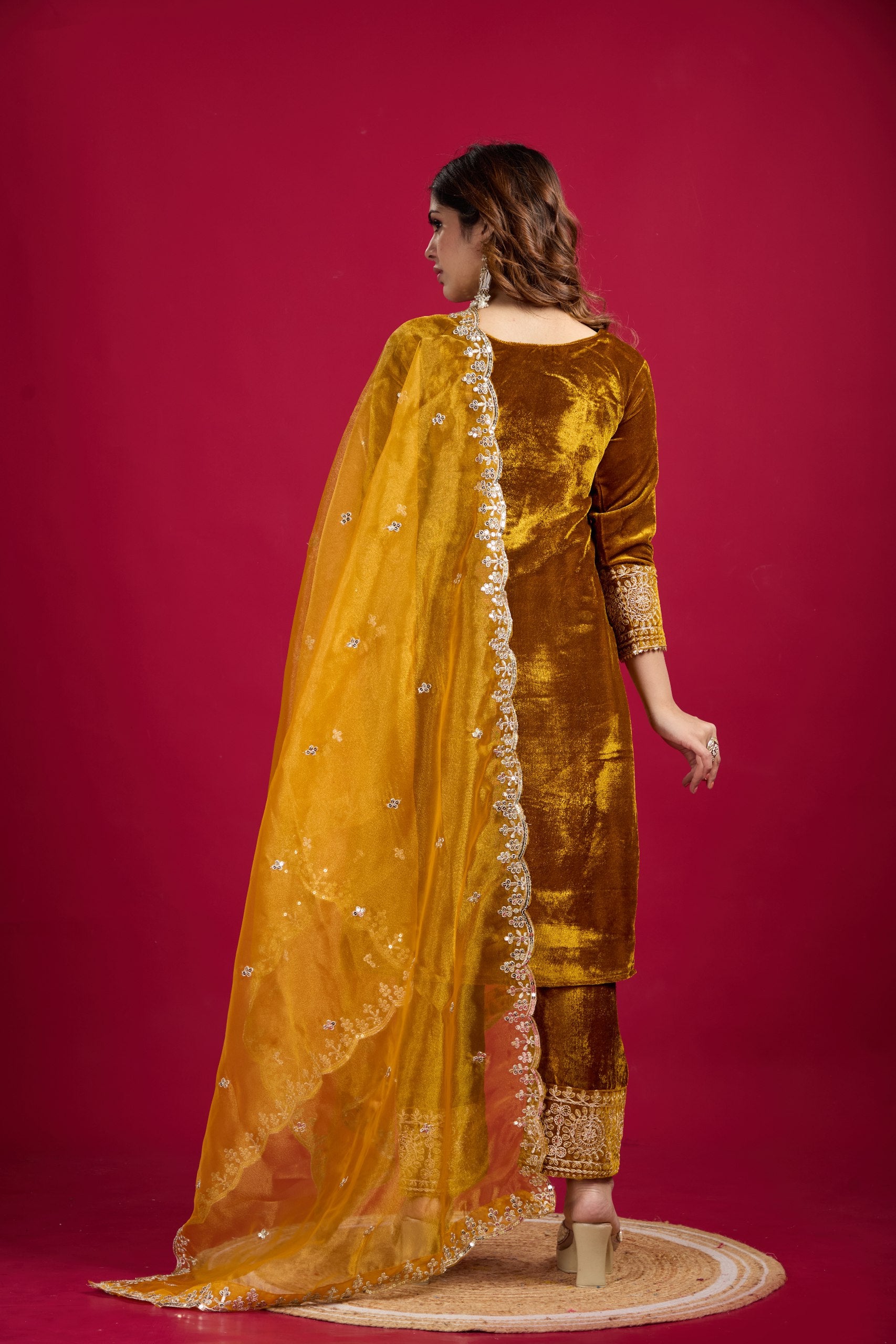 The suit is amazing. Very beautiful, same as photos with very heavy work. Loved it and so happy with my purchase!!