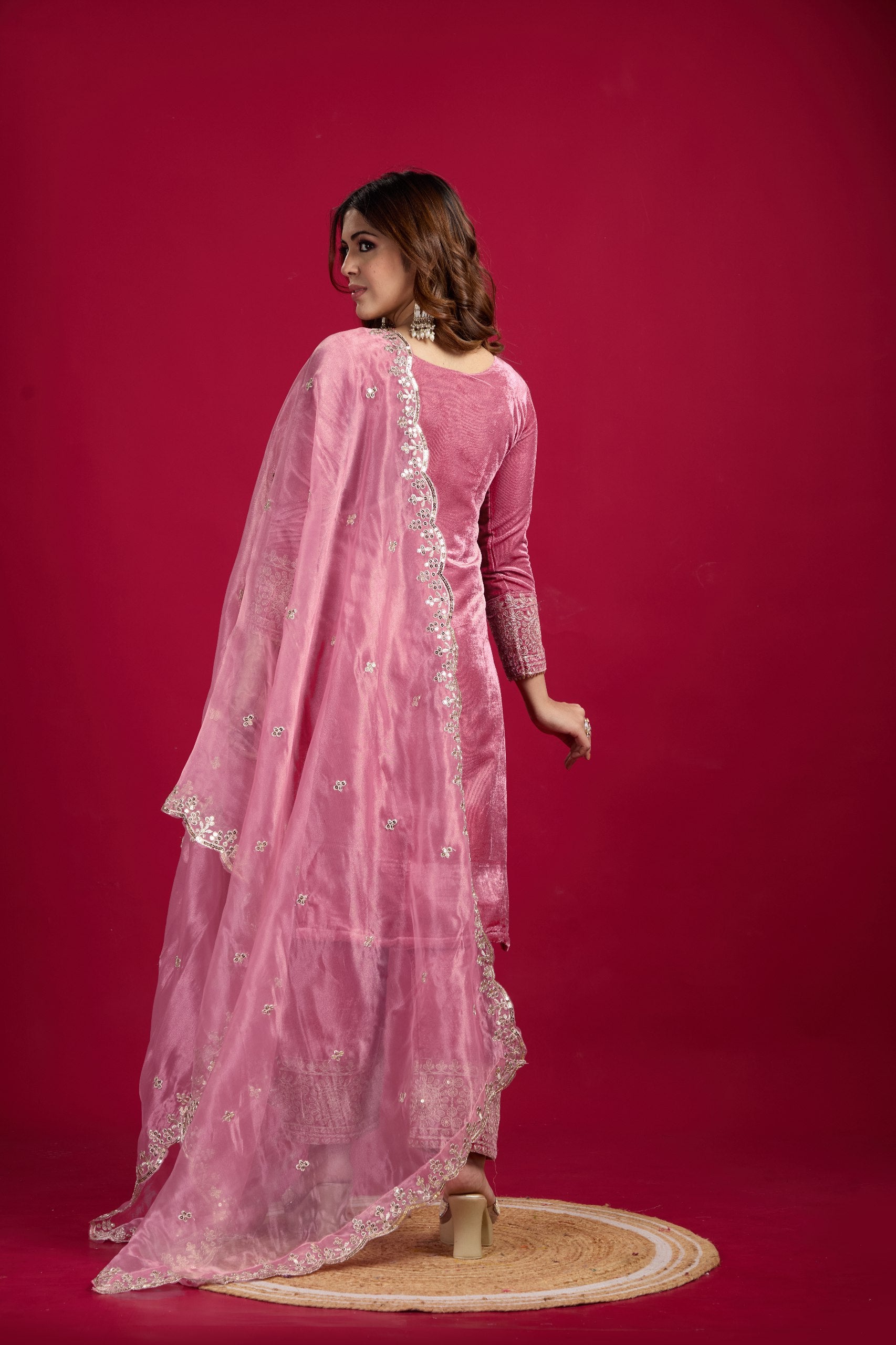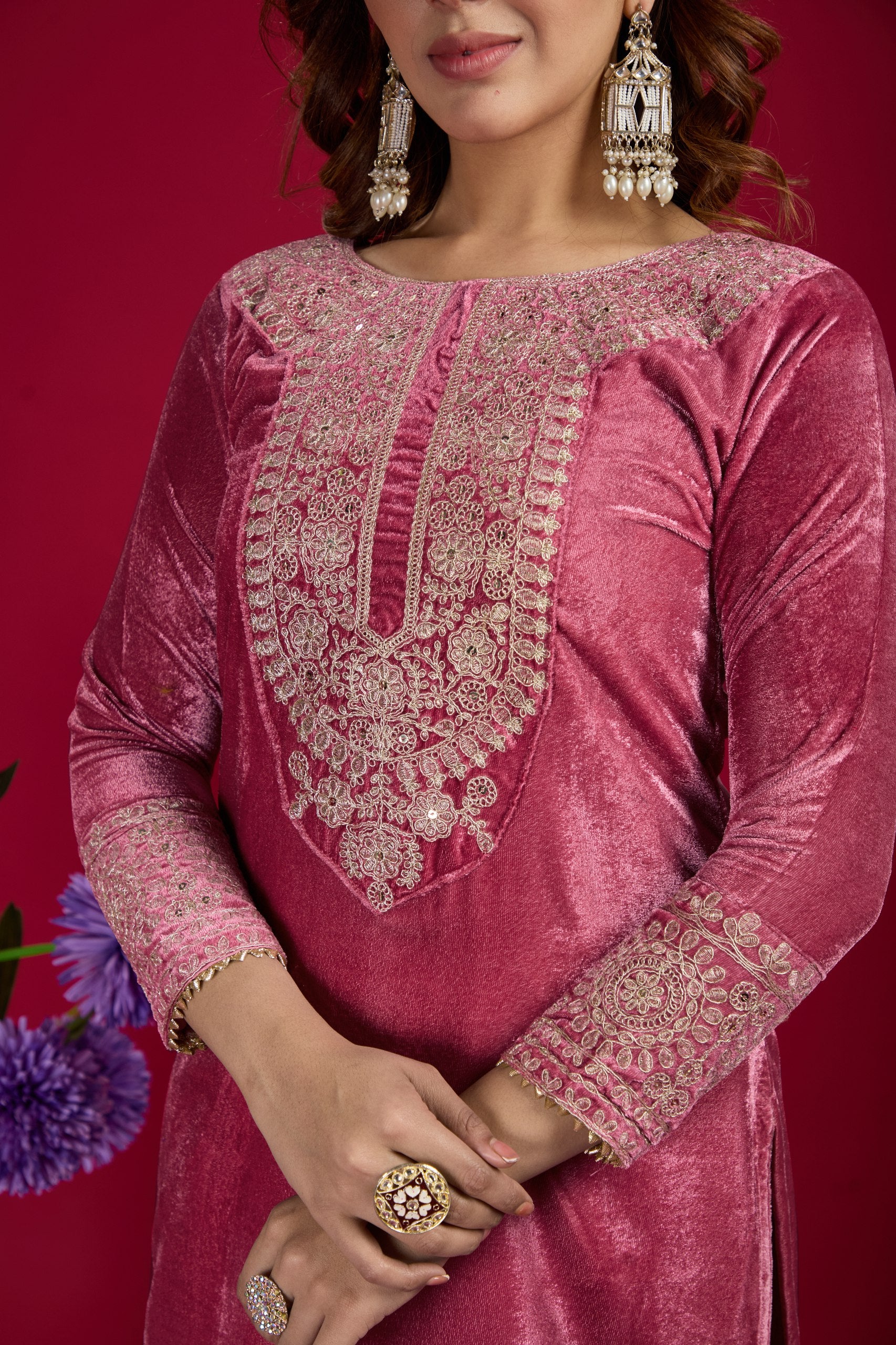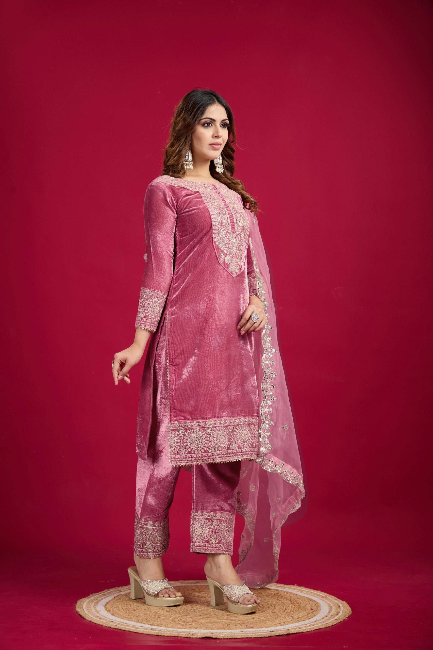Function Wear Velvet Pink Color Salwar Suit With Duptta