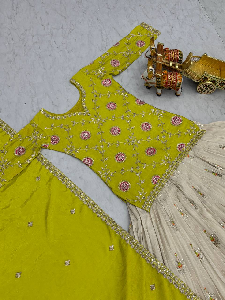 Function Wear White Lehenga With Green Color Kurti