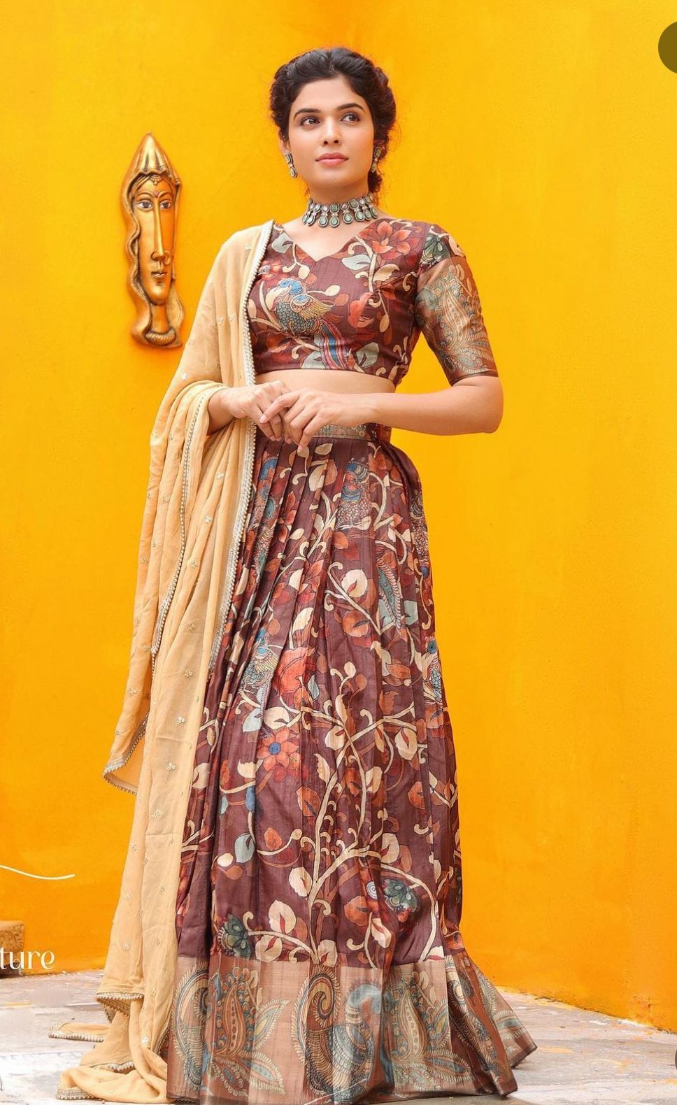Glimmering Kalamkari Print Work Malhari Silk Lehenga Choli