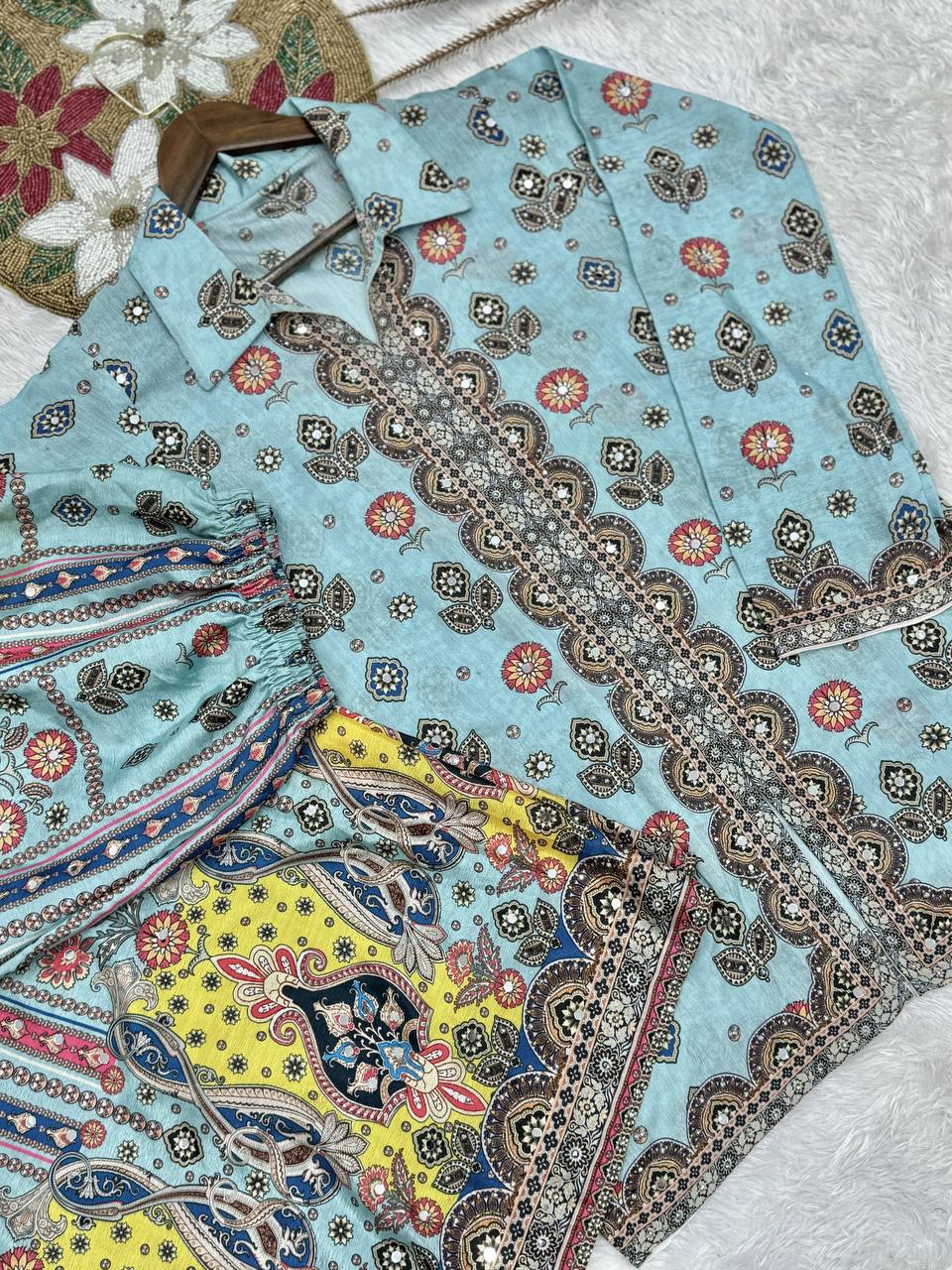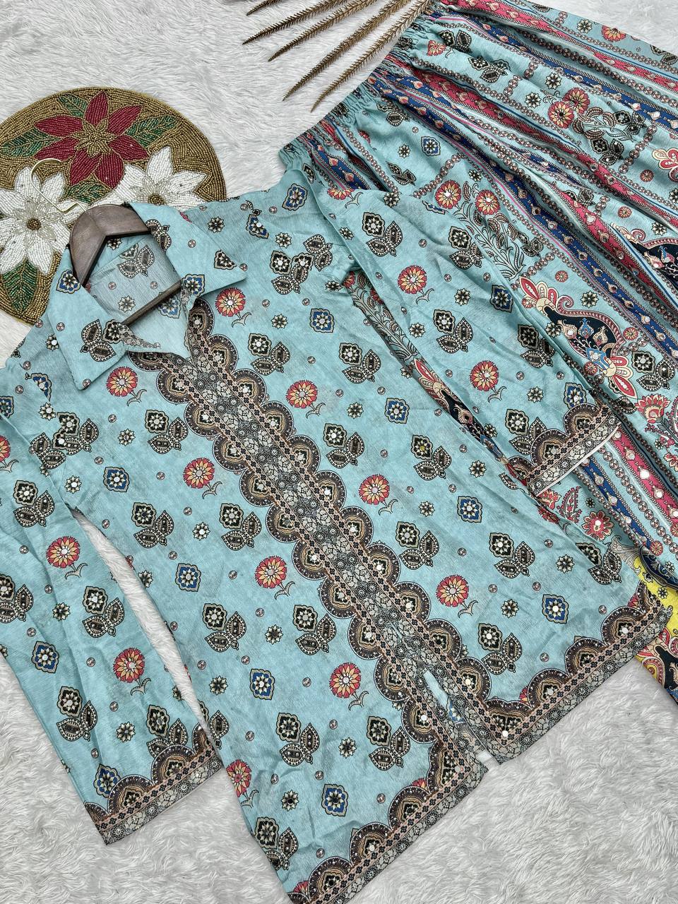 Palazzo Fabric : Pure Chinon Silk With Digital Print And Real Mirror With Stone Hand Work With Elastic