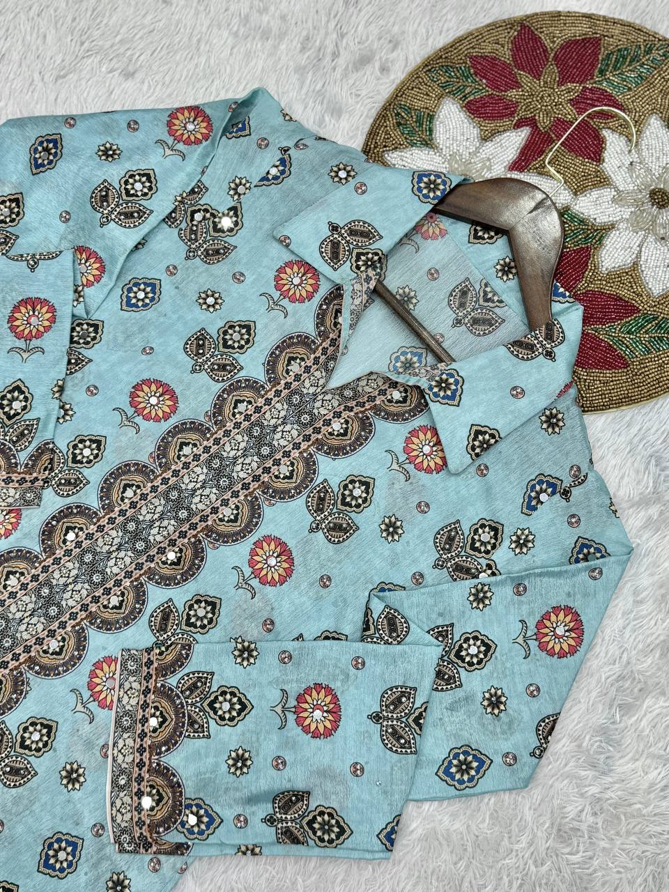Top Fabric : Pure Chinon Silk With Digital Print And Real Mirror With Stone Hand Works Length: 30 Inch