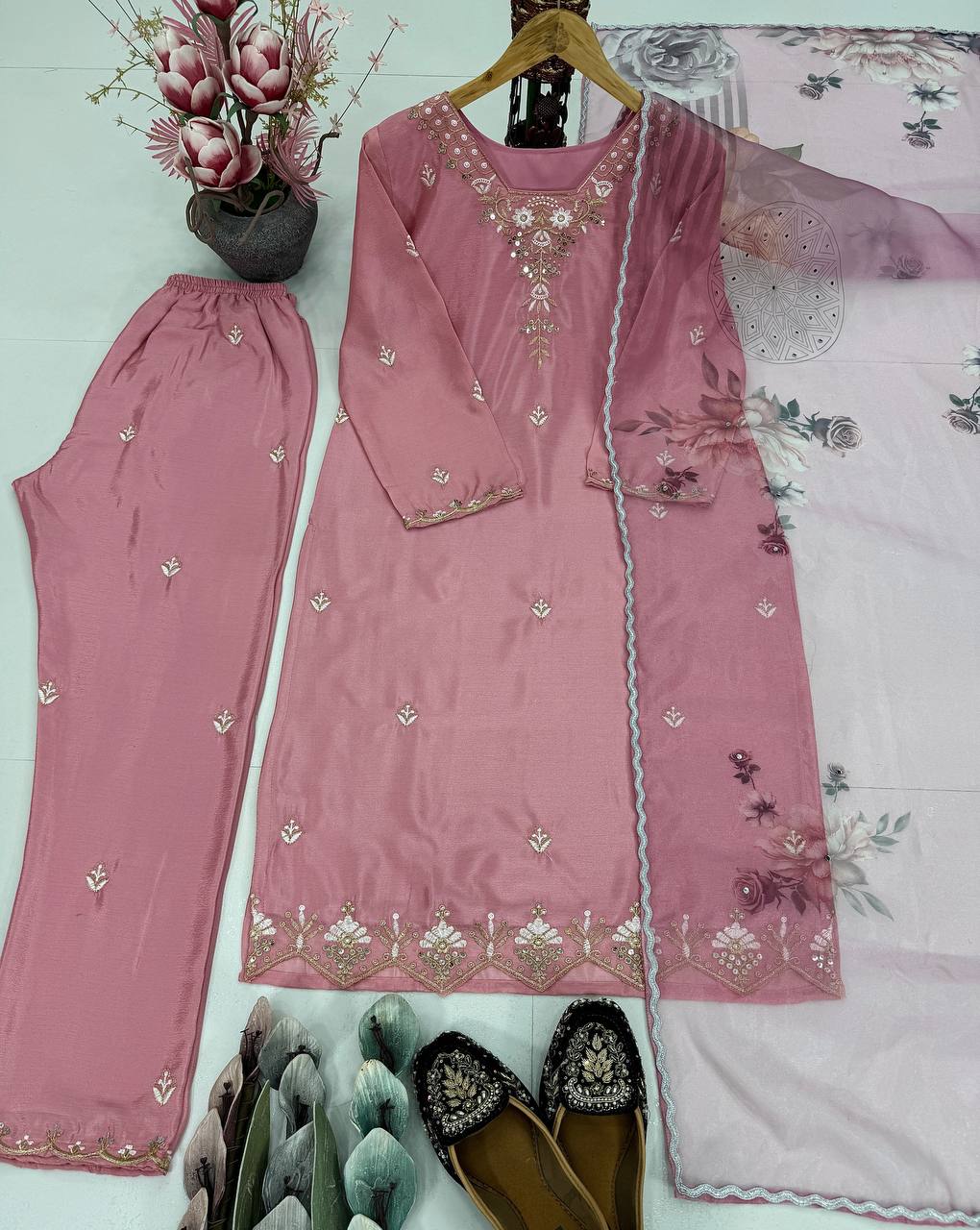 Gorgeous Pink Creap Sequence Work Palazzo Suit