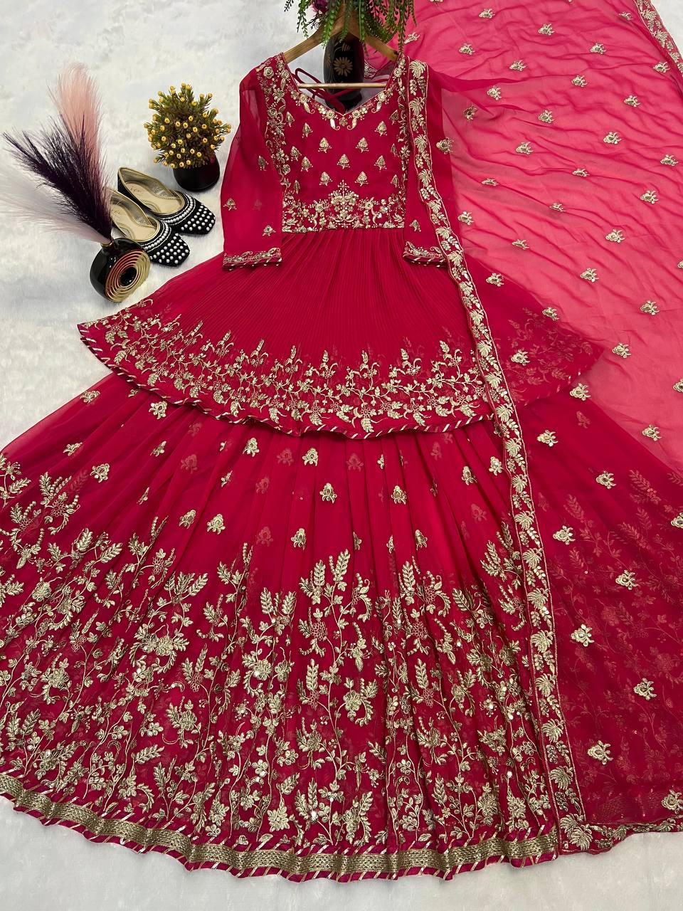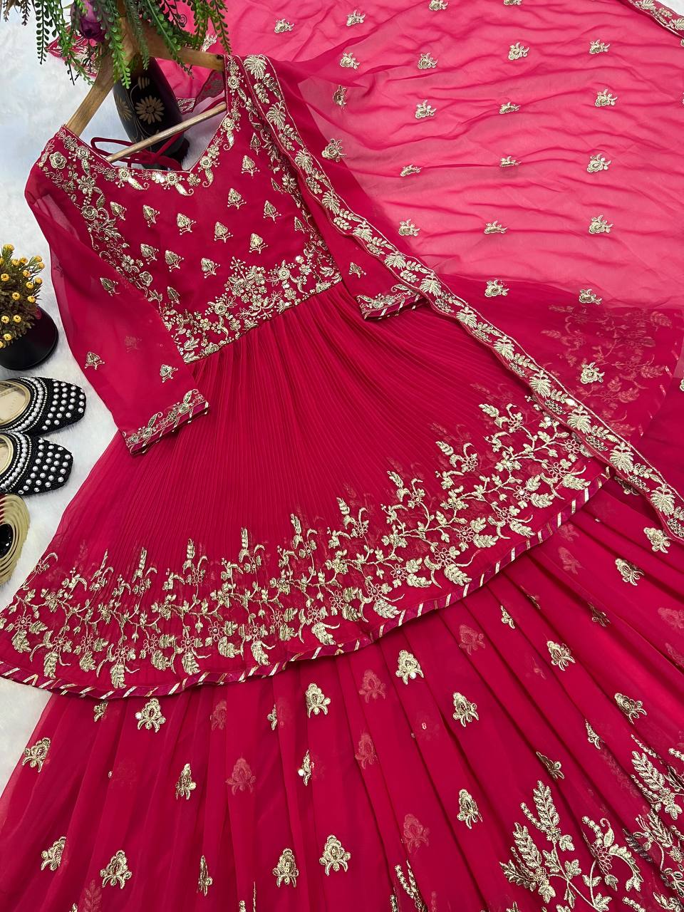 Gorgeous Red Georgette Embroidery Work Lehenga Choli