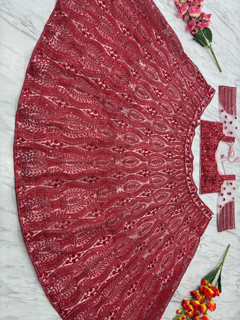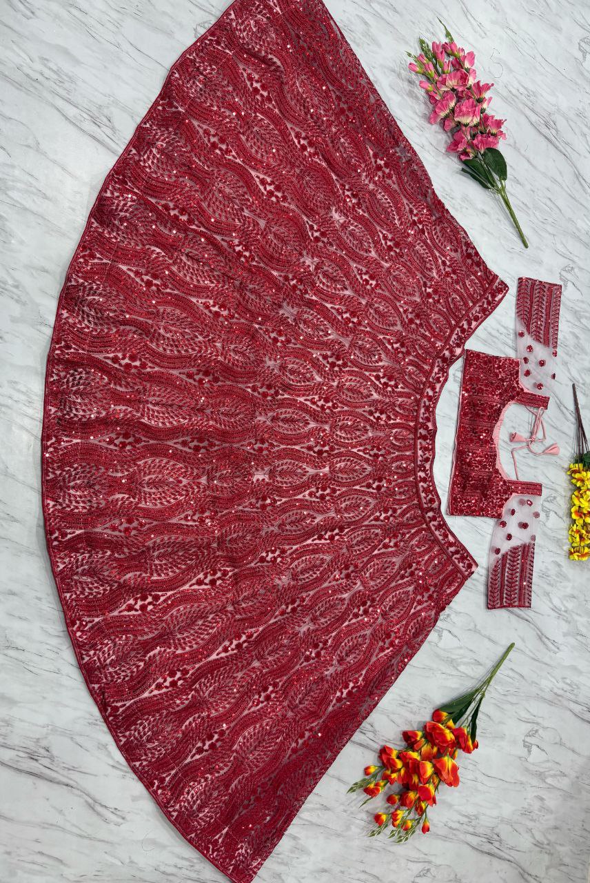 Lehenga : *Premium Net Embellished With Beautiful Thread Embroidery , Beautiful Coding And Heavy Sequins Work With Heavy Cancan And Canvas With Double Inner Covering With Flair 3.5 MTR*( Semi Stitched Upto Xxl )