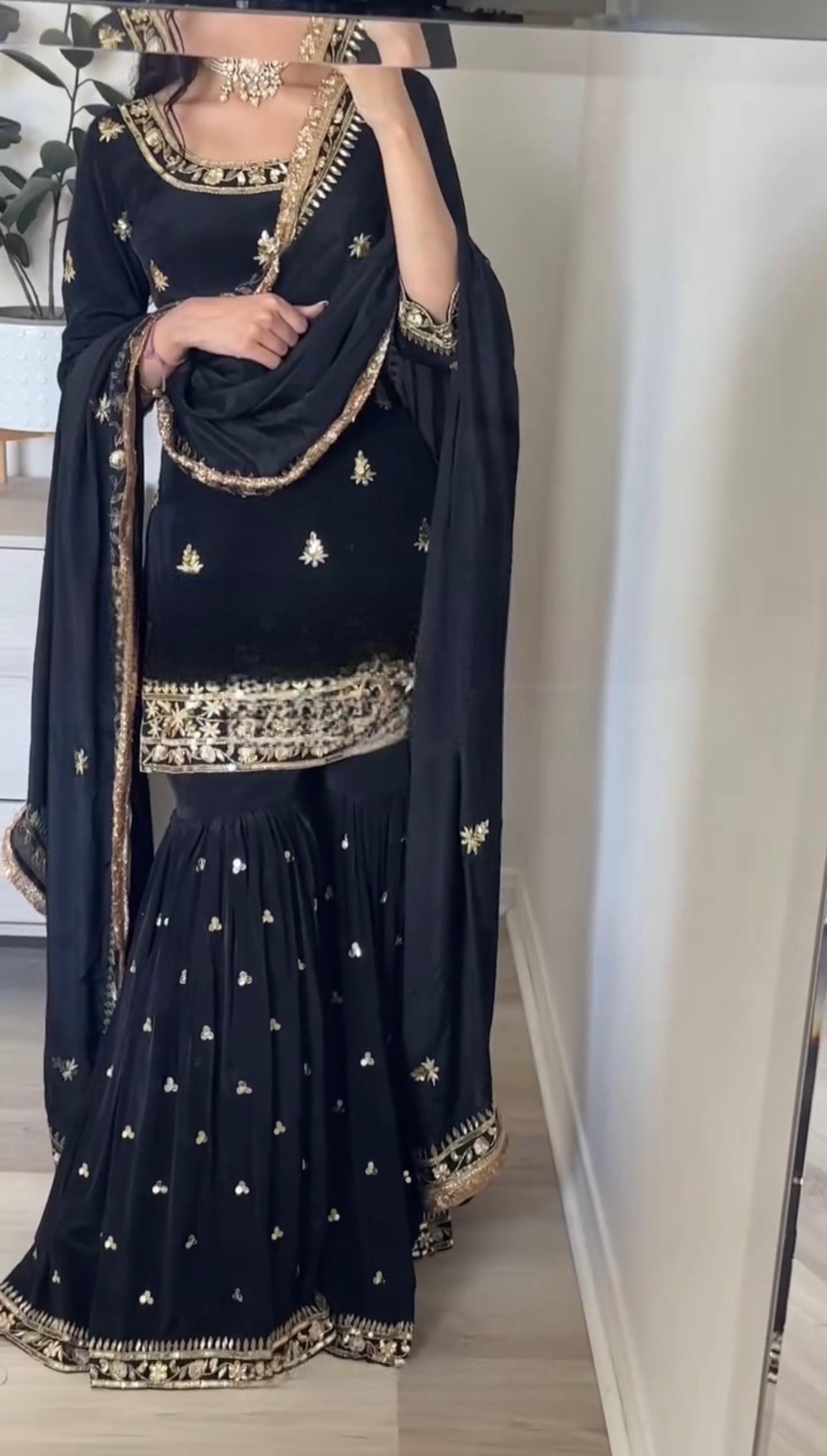 Top Fabric :- Heavy Natural Crep With Heavy Embroidery Sequence Work With Full Sleeve With Latkan Dori