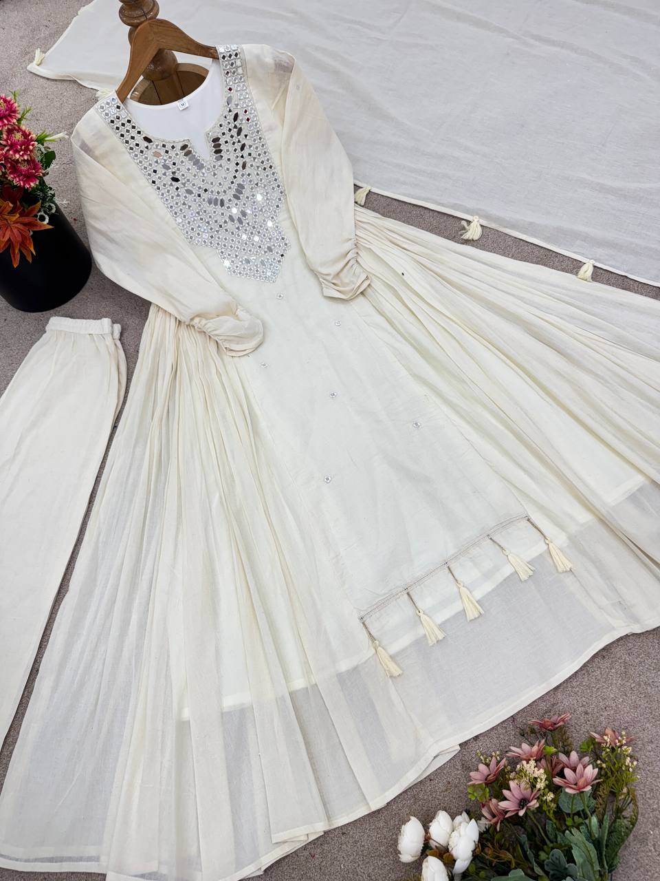 ๐ Gown Fabric :Pure Khadi cotton With Khatli work with real Mirror
