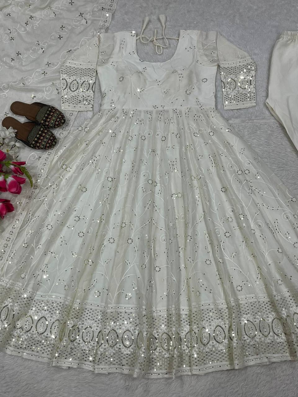 Lovely White Color Georgette Sequence Work Anarkali Suit