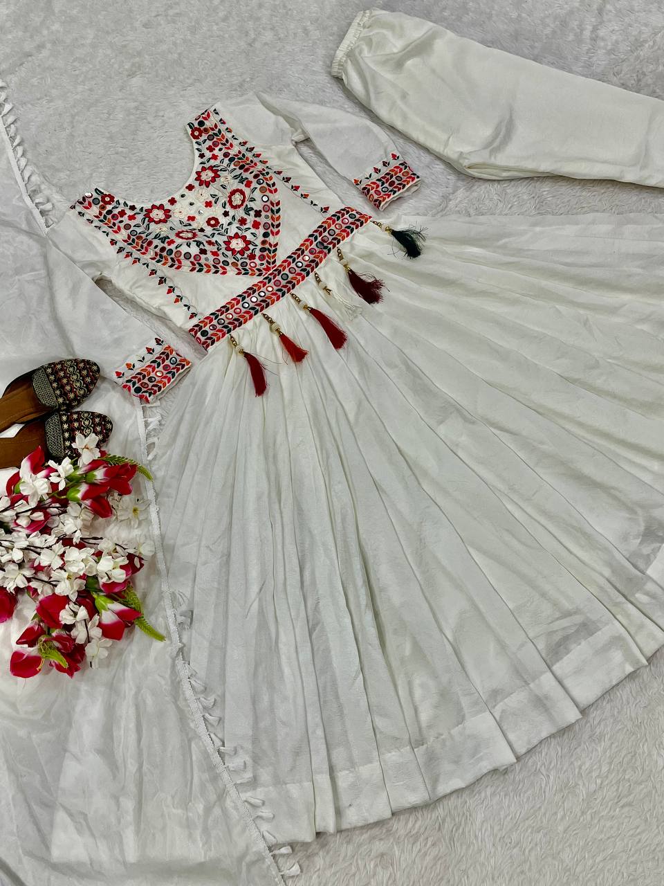 Lovely White Silk Embroidery Work Anarkali Suit