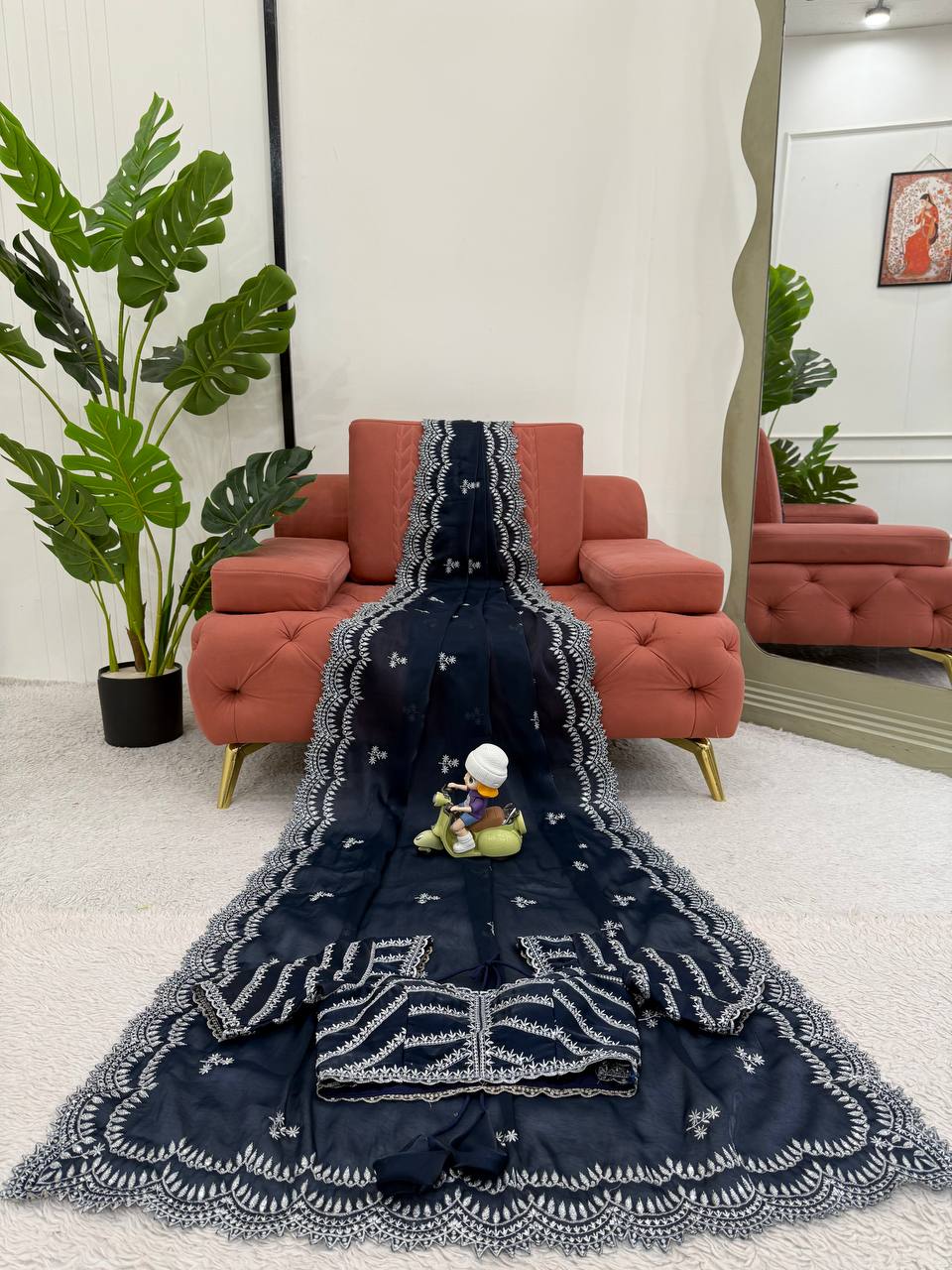 Navy Blue Color Thread With Sequence Work Designer Saree