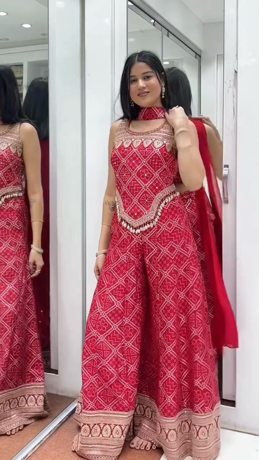 Occasion Wear Chinon Silk Red Color Sharara Suit